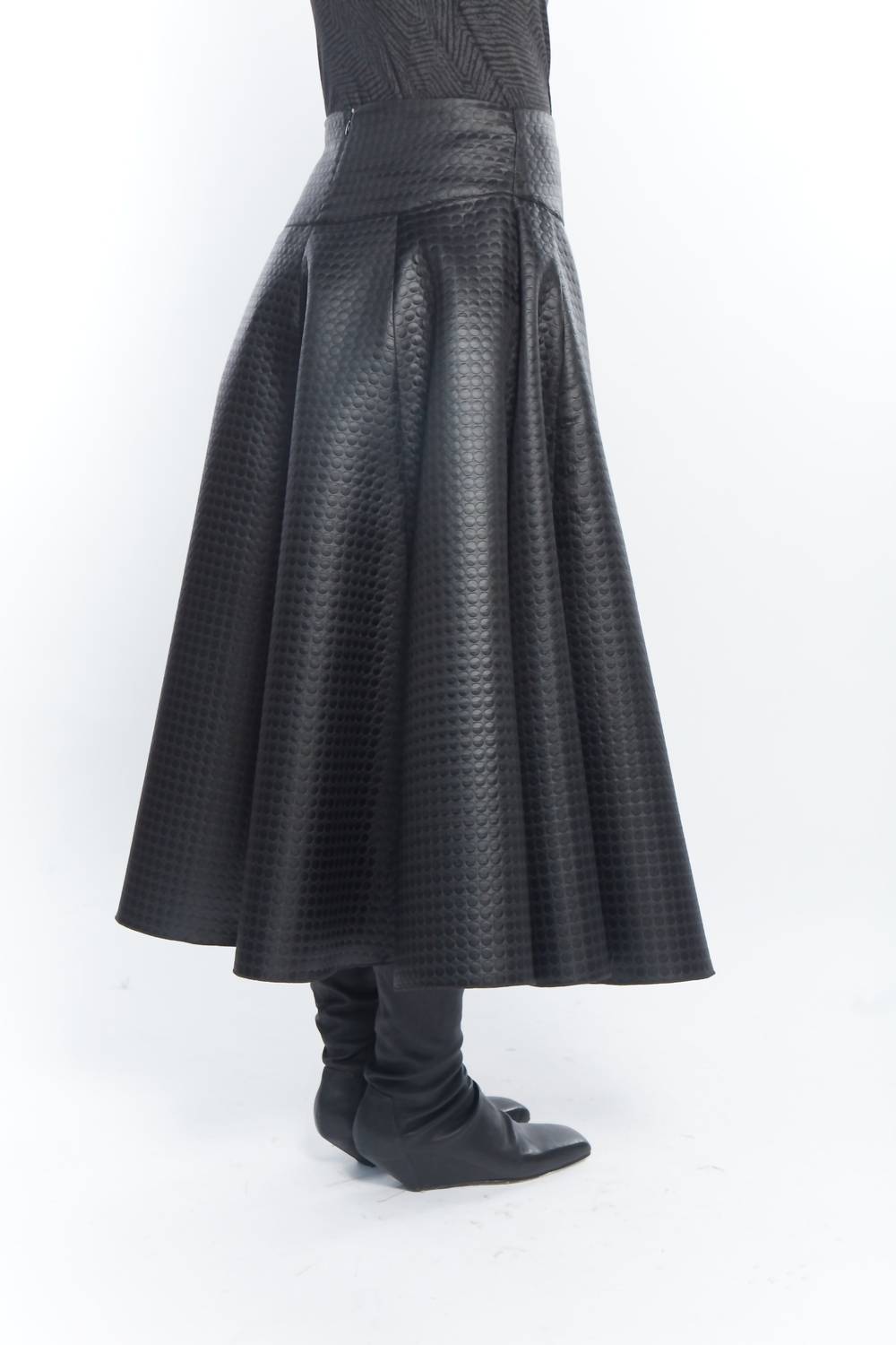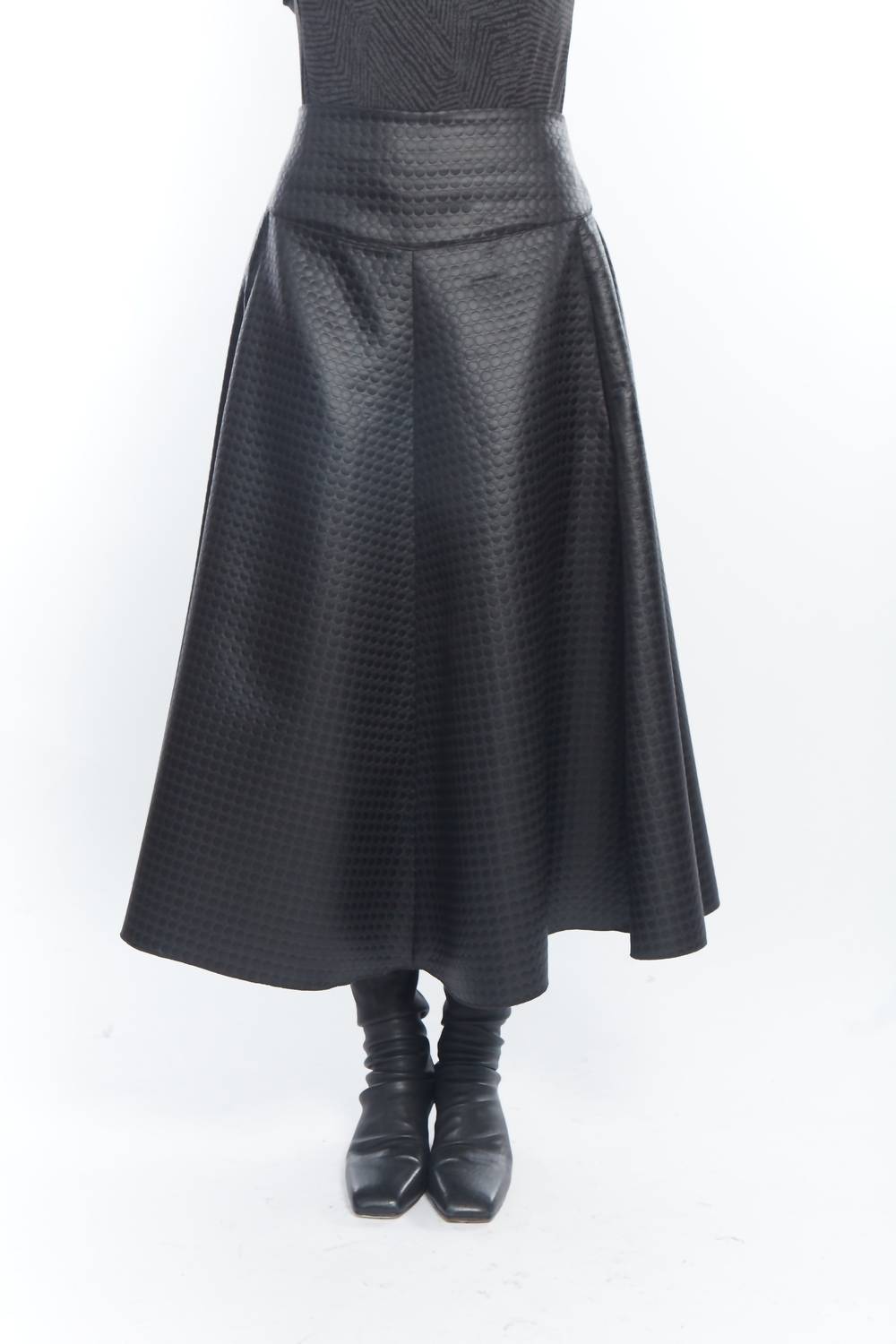 Introducing the Gable Quilt Midi Skirt by Matthildur, a standout piece in timeless black that will elevate your wardrobe. Crafted from premium cotton, this midi-length skirt features a unique dot pattern that adds texture and visual interest. Perfect for bold fashion statements, it's designed without pockets for a streamlined silhouette. Care is simple with machine wash compatibility and tumble dry instructions.