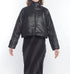 Introducing the Leda Crop Long Sleeve Jacket by Matthildur, a standout choice for the modern fashion-forward woman. This black bomber jacket showcases a fashionable mockneck and a chic patterned design, enhanced by its functional pockets. Closure: Zip closure. Care: Machine wash, tumble dry.