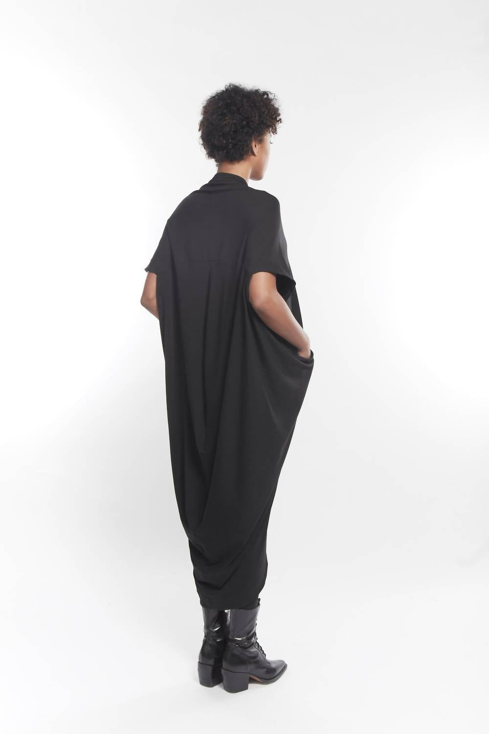 A perfect addition to any wardrobe, this classic tunic style blouse is flattering and effortless. You can easily transition from desk to dinner in this chic top. Introducing the Trapeze V-neck Short Sleeve Tunic Top by Matthildur, designed to make a bold statement while ensuring exceptional comfort. Crafted from soft cotton, this solid black tunic offers a stylish V-neck and convenient pocket details. With a pull-on style for effortless wear, it effortlessly combines ease with elegance. Care instructions include machine wash and tumble dry for convenient maintenance.