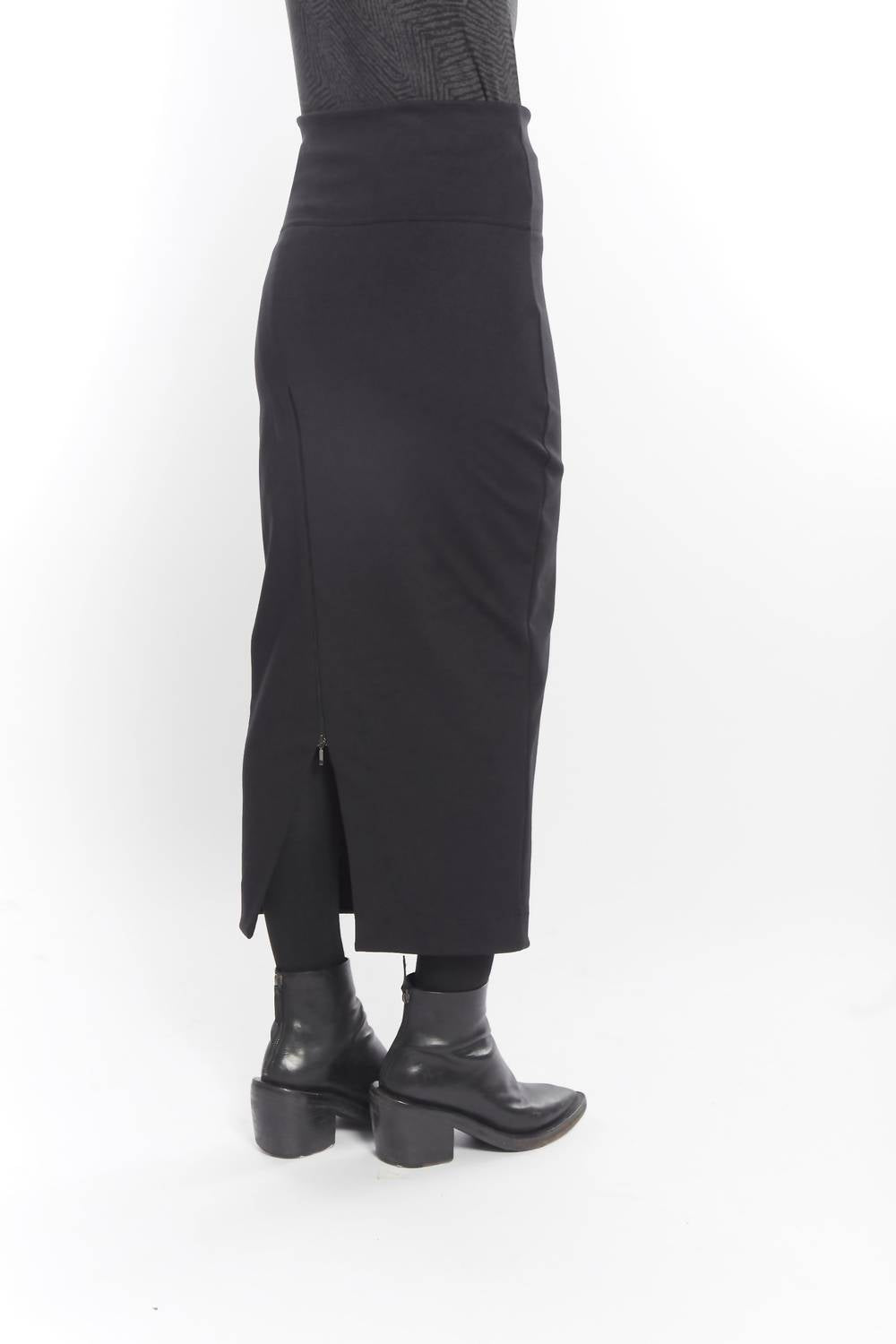 Introducing the Vault Stretchy Maxi Skirt by Matthildur, a must-have piece for your wardrobe this season. This black maxi skirt features an eye-catching zip closure that transforms your look with ease. Crafted from ultra-stretchy cotton, it hugs the body in all the right places. Enjoy the versatility of pairing it with oversized or slim-fit tops. Care: Machine wash and tumble dry.