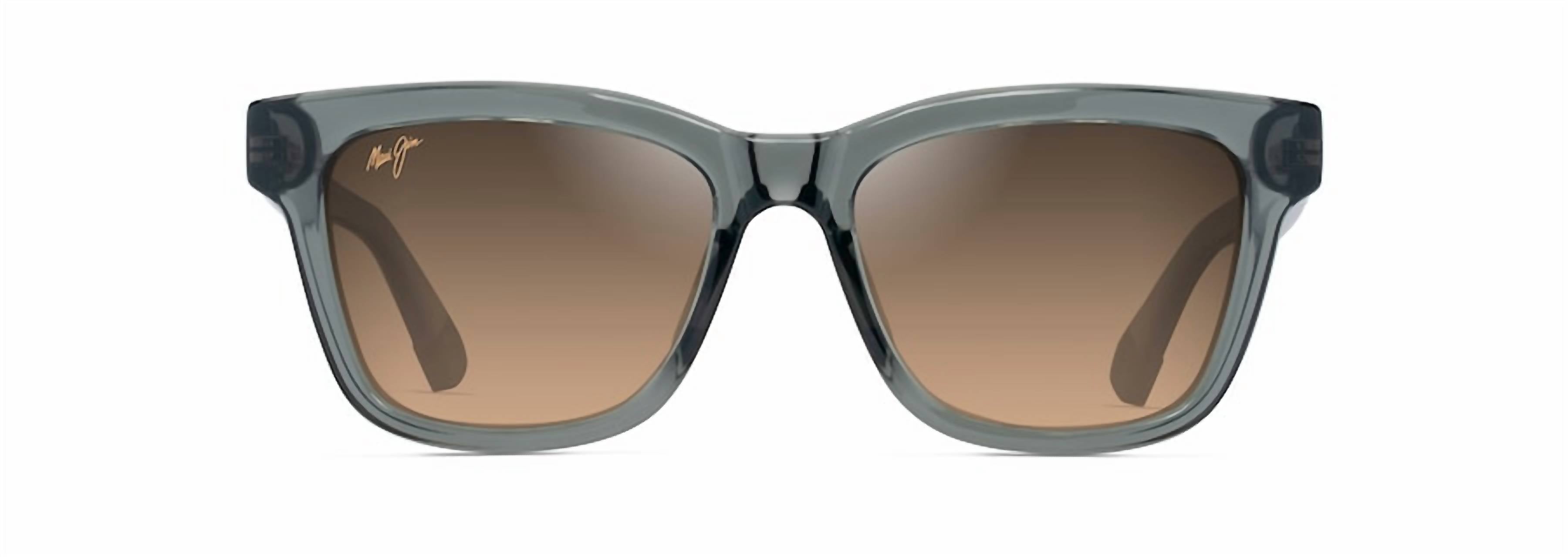 Enhance your eyewear collection with the Hanohano Polarized Classic Sunglasses HS44-14 by Maui Jim, a stylish accessory that seamlessly balances functionality and fashion. Constructed with a durable nylon frame front and temples, these sunglasses feature a classic square silhouette ideal for diamond, heart, oval, and round face shapes. Equipped with 3-barrel hinges, they ensure sturdy wear, and their dimensions are (eye) 52, (bridge) 17, (temple) 145, with a 4 base curve and a height of 42. The translucent grey and HCL bronze lenses provide a versatile color palette for every occasion.