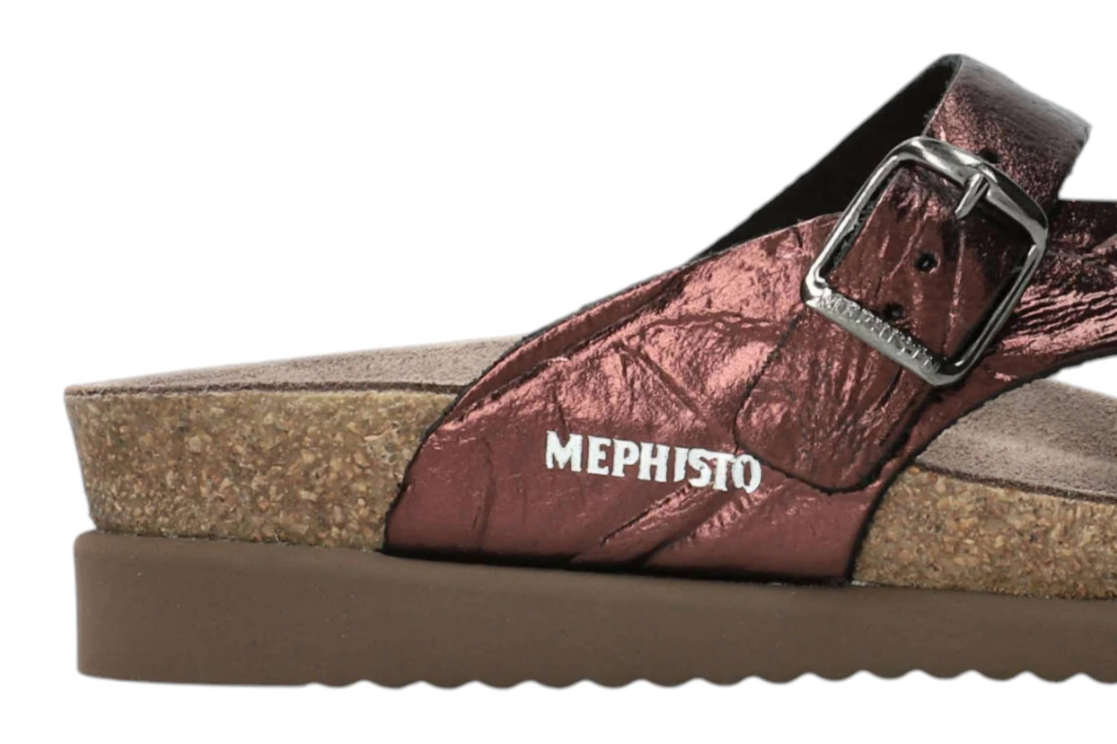 Introducing The Classic Helen Sandals by MEPHISTO, designed for supreme comfort and timeless style. Crafted from premium leather, these sandals feature a round toe and a flat heel, making them ideal for any occasion. They are equipped with SOFT-AIR technology for added comfort and exclusive AIR-RELAX technology for unparalleled arch support. Fastening is made easy with adjustable buckle straps, ensuring a perfect fit. Available in Chianti, these sandals are a must-have for your warm-weather wardrobe.
