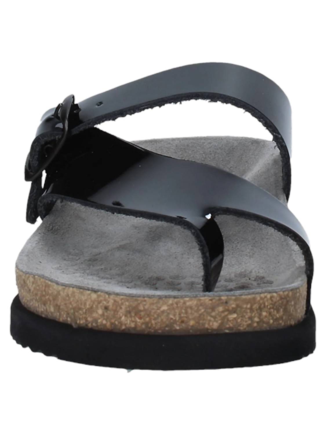 Leather, patent or nubuck leather uppers. Made with the finest materials for breathability and durability. Light, lining-free Mephisto ladies' sandal. Unique cork footbed. Ensures soft, stress-free walking. Glove-soft leather uppers and light wedge. Easy slip-on style with an adjustable buckle for a personalized fit. Cork footbed lined with leather that softens over time for proper heel, arch and foot support when walking. Rubber outsole. Mephisto recommends ordering up a full size for this style since it runs small (for example, if you are a size 6, you may want to choose a size 7). Heel Height: 1 in.