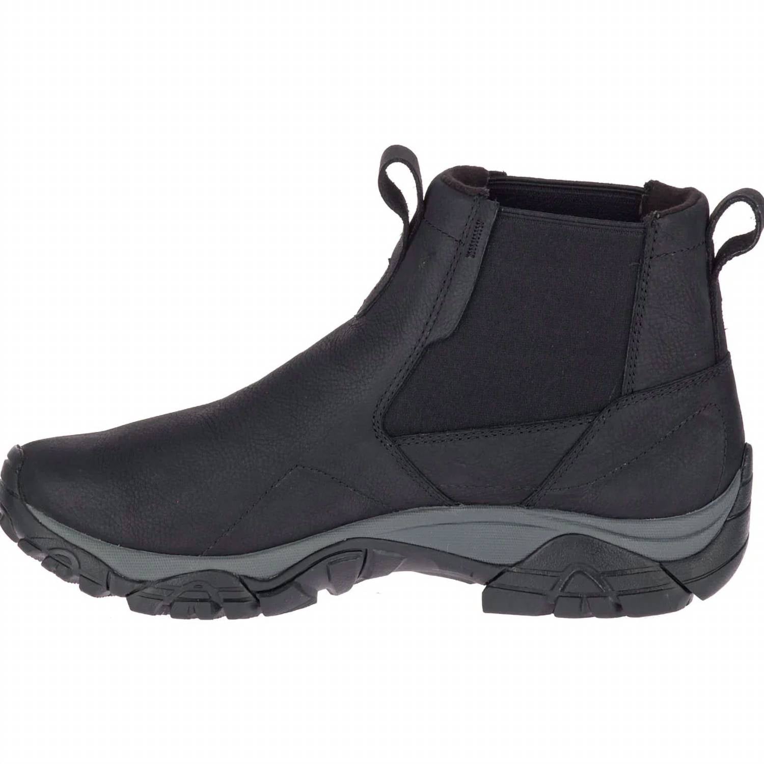 Introducing the Men's Adventure Chelsea Waterproof Boot by MERRELL, a robust choice for those seeking durability and comfort. Designed with a full grain waterproof leather upper, this boot features M Select™ DRY technology to keep feet dry, while M Select™ WARM insulation provides lightweight warmth. The double gore construction ensures easy on and off, complemented by a fleece lining for added comfort. Built with a Kinetic Fit™ Base removable contoured insole, molded nylon arch shank, and EVA midsole, these boots offer flexible support and stability. The Vibram® outsole guarantees exceptional traction in all weather, and the boot weighs 1lb 13oz (832g), perfect for outdoor adventures.