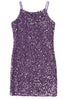 Let her dazzle in the eye-catching dress for the young fashionista. Crafted from 100% polyester with a lining of 95% poly and 5% spandex. Offers comfortable wear and durability. Features a bold purple shade with sparkling sequins that catch the light. Care for this stylish dress by hand washing and line drying.