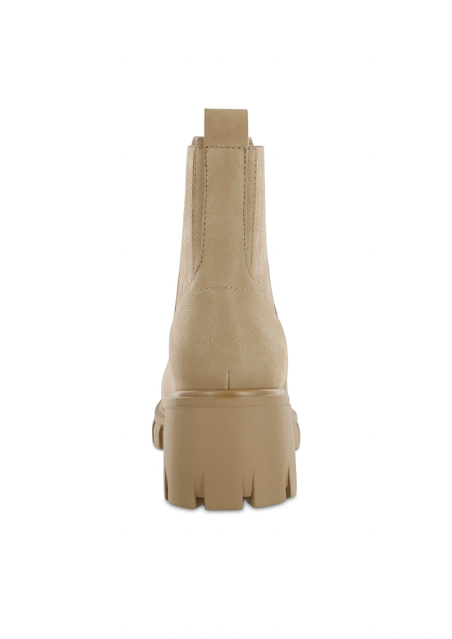 Say hello to the perfect, most versatile boot. The ankle height makes this style easily transition from day to night. Wear them with your favorite skinny jeans and tee for a more laid back look, or pair them with your favorite mini dress and jacket for a night out on the town. Step into style with the Women's Rigo Chelsea Ankle Boots by MIA, crafted in a chic stone color ideal for a preppy, spring look. Featuring a 5 1/2" shaft and a 2 1/4" block heel, these boots offer both comfort and stature. Designed with a chunky lug sole and contoured footbed, they ensure stability and an effortless fit. Made from faux suede, these boots promise versatile styling all season long.