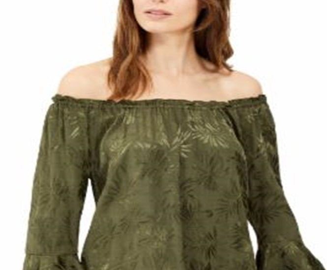 Michael Kors Women's Blouse Embroidered Green Size Medium