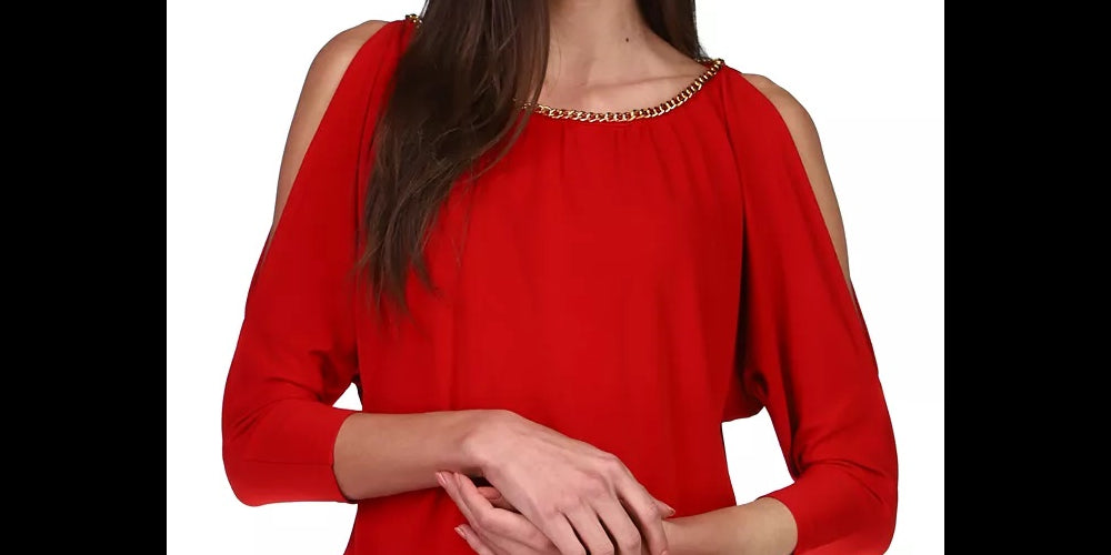 Michael Kors Women's Chain-Trim Slit-Sleeve Top Dark Red Size Extra Large