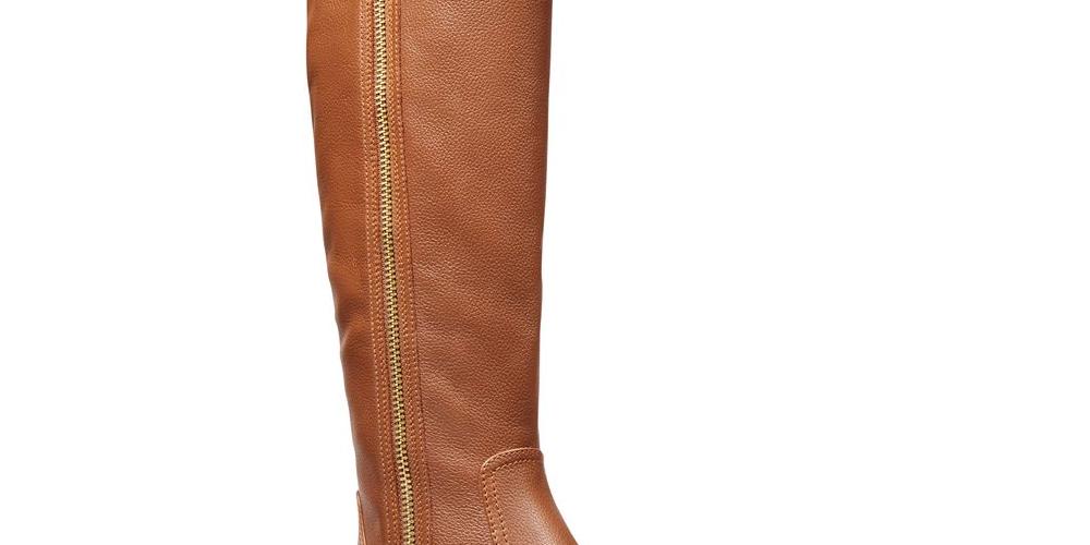 1-1/2 heel| Almond-toe full zip riding boot| Lock logo detail on zipper
