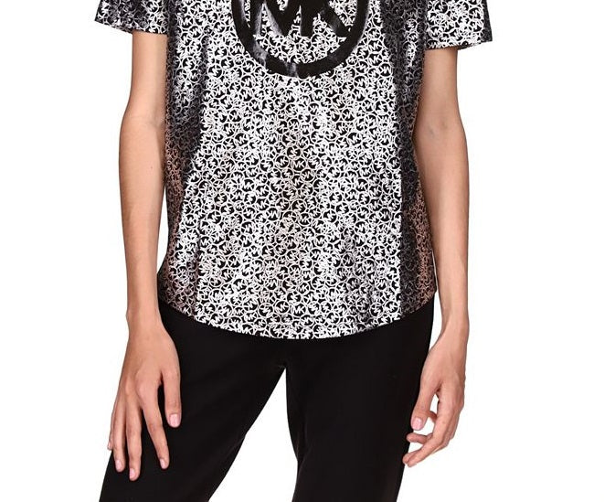 Michael Kors Women's Organic Cotton Metallic Logo Print T-Shirt Black Size Large