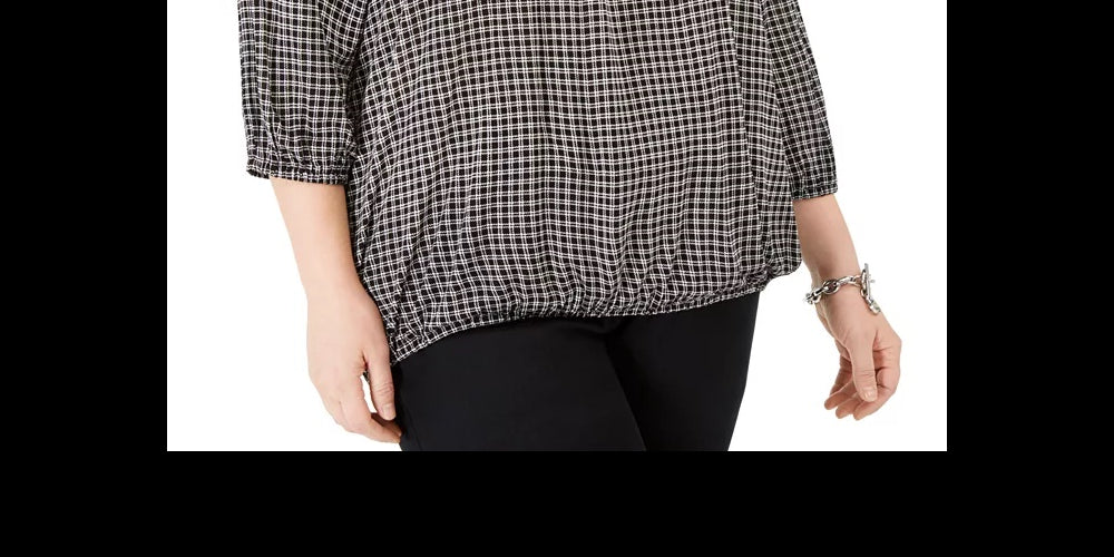 Michael Kors Women's Plus Boho Check Print Peasant Top Silver Size 0X