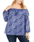 Michael Kors Women's Plus Printed Ruffled Off The Shoulder Top Blue Size 2X