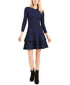 Michael Kors Women's Printed Long Sleeve Jewel Neck Short Fit Flare Dress Black-Blue Size Petite Small