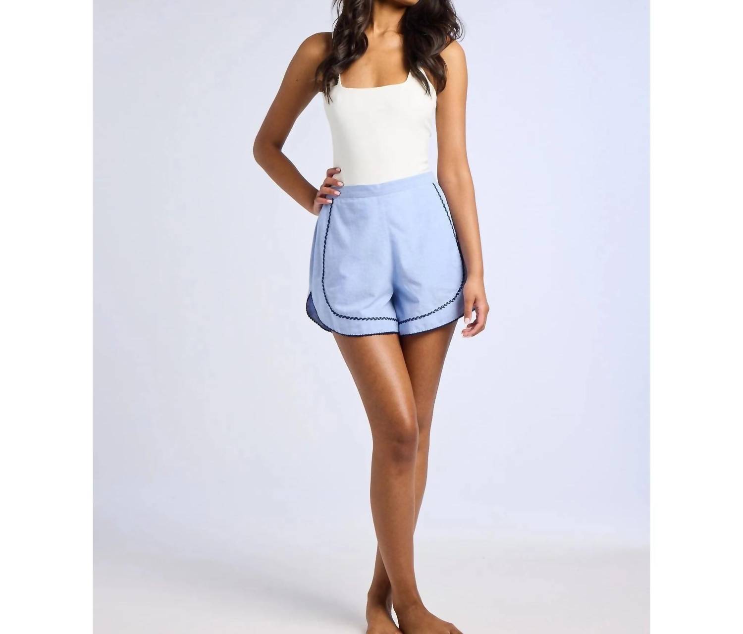High-waist is here to stay and we especially love this style short. Introducing the Billie Short by MILLE, a minimalist choice in serene Ciel ideal for a chic beach day. Crafted from 100% cotton, these women's shorts boast a high-rise fit with a flat waistband that is elasticized at the back for comfort. With pull-on styling and convenient side slash pockets, these shorts feature a 4-inch inseam for a flattering silhouette. Care instructions: Machine wash.
