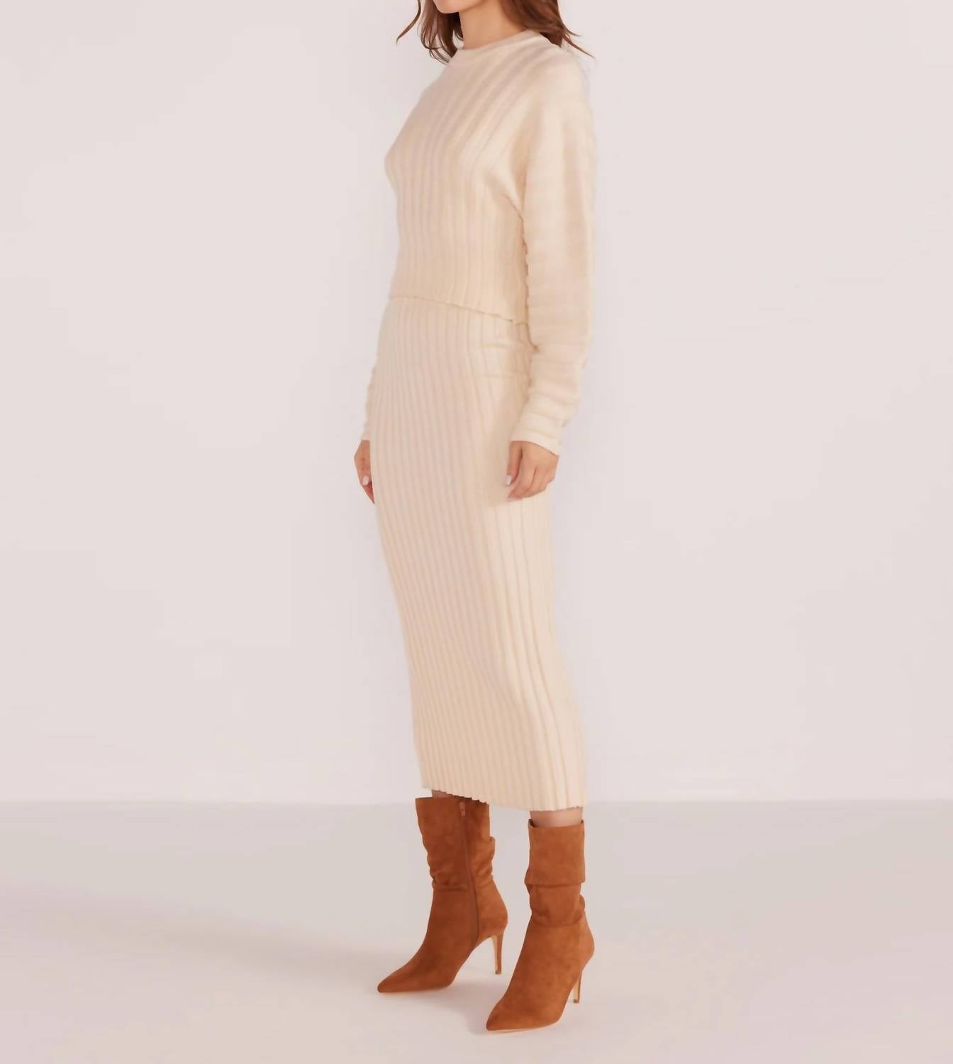 The ultimate go-to sweater, expertly crafted to provide the perfect combination of warmth and style. Its classic design and soft fabric make it a must-have addition to your wardrobe. Embrace chic winter style with the MINKPINK Layla Ribbed Sweater in a striking winter white. This long sleeve sweater, crafted from 100% polyester, marries warmth with elegance, featuring a crewneck for cozy wear. Designed to hit at the hip, its slouchy sleeves provide a relaxed fit perfect for any casual outing. Care for this imported piece with a machine wash to maintain its pristine condition. Model wears a size small, true to size.