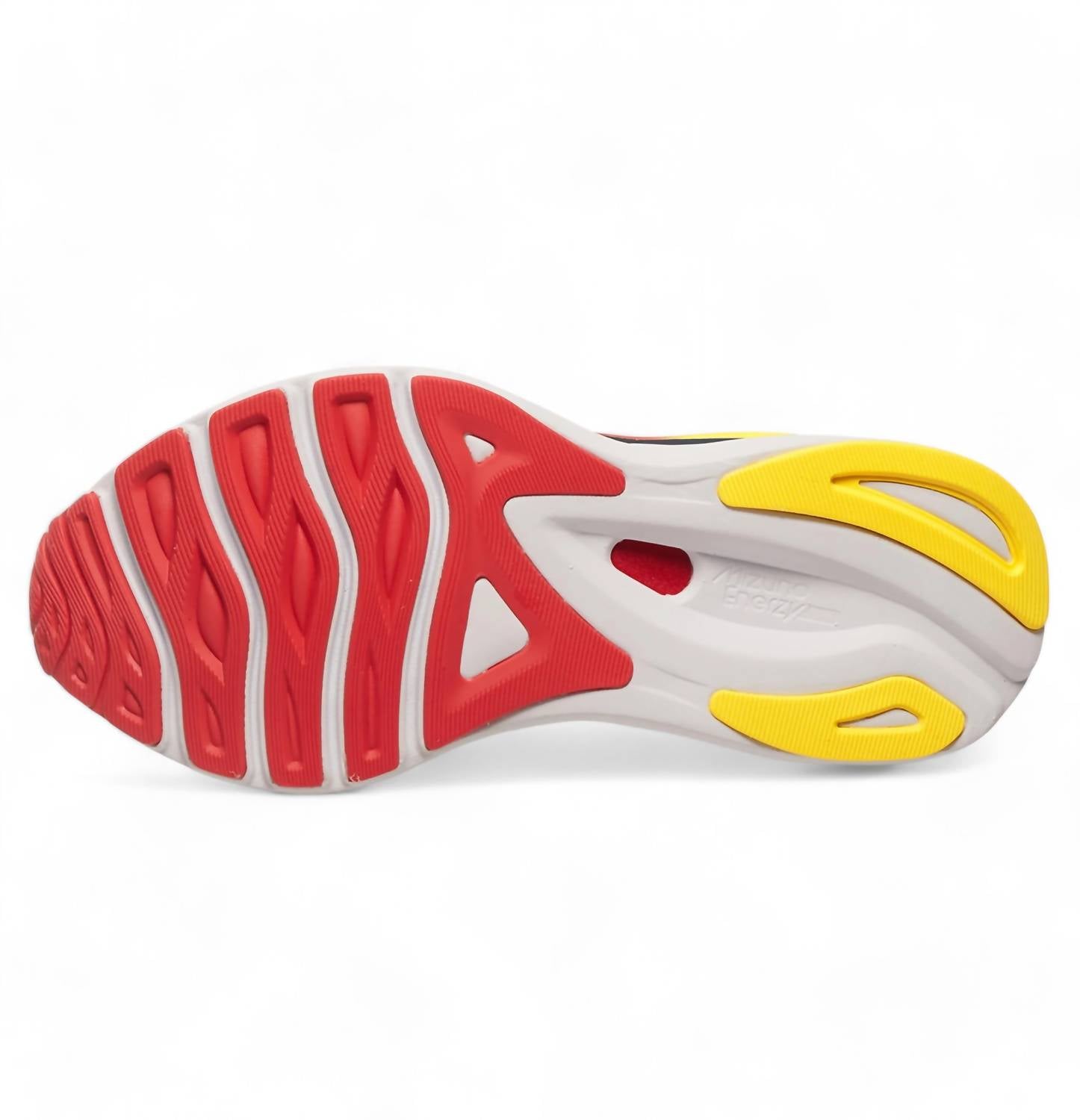 When fashion meets function. The shoe features Mizuno Enerzy Core, a new advanced midsole material that offers exceptional resiliency and softness, enhancing comfort and adding spring to boost performance. The Mizuno Enerzy Foam ensures versatility while maintaining softness and resilience, further improving performance capabilities. Mizuno Wave® technology disperses impact energy across a broader area for a stable platform and superior cushioning. The X10 Outsole, made from durable carbon rubber, ensures extended wear. Weight: 265g (9.3 oz). Drop: 8 mm.