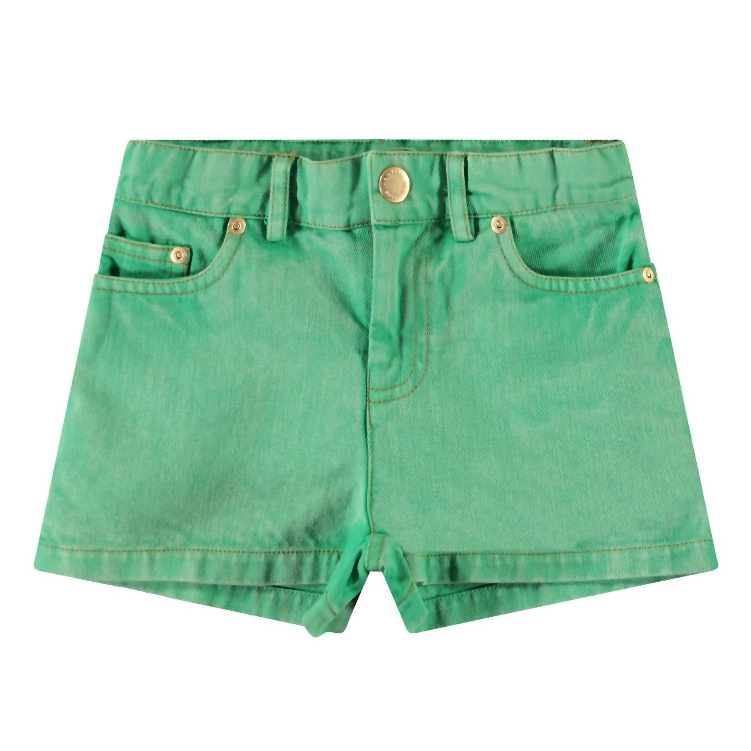 Add a pop of color to your summer wardrobe with the Girl's Amberly Short by Molo in a vibrant green. These organic cotton denim shorts feature a gold snap button and zip closure, along with an elastic waistband for easy wear and a great fit. Designed with four pockets, these shorts are both practical and stylish. Care instructions: Machine wash.