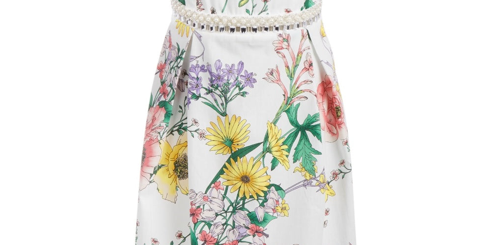 Monteau Big Girl's Embellished Floral Print Dress White Size Large