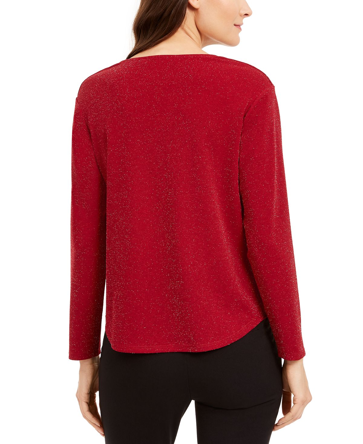 Monteau brings shimmer and shine to a classic silhouette with this petite cowlneck top.| Relaxed fit; approx. 22 long| Designed to fit and flatter 5'4 and under frame| Cowlneck| Polyester/woven with metallic fibers/spandex| Hand wash| Imported