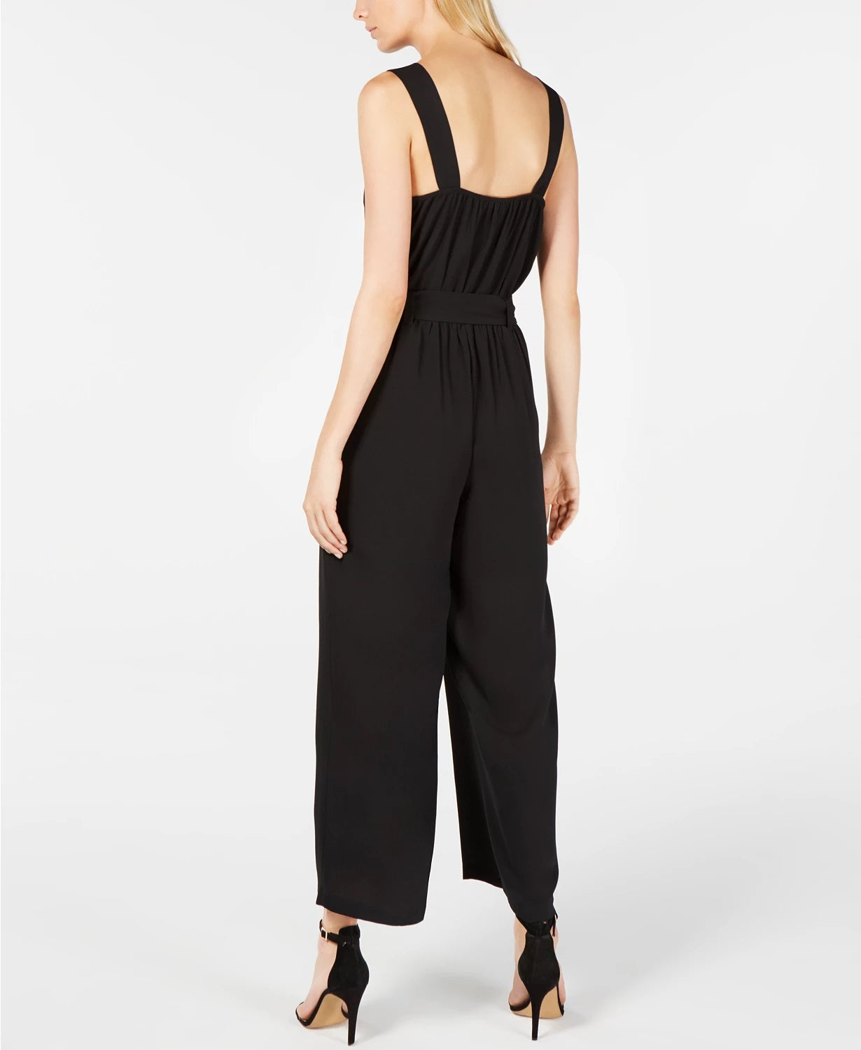 Monteau Women's Petite Square-Neck Jumpsuit Black Size Petite Large