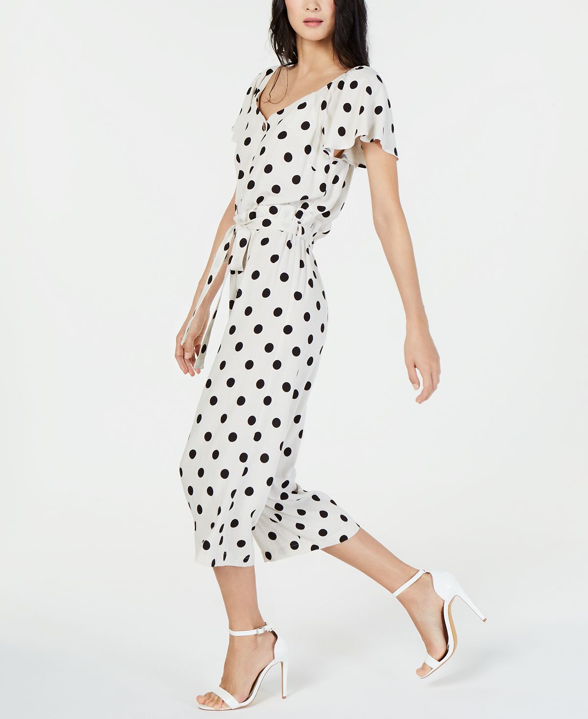 Monteau Women's Polka Dot Flutter Sleeve Jumpsuit White Size Petite XL
