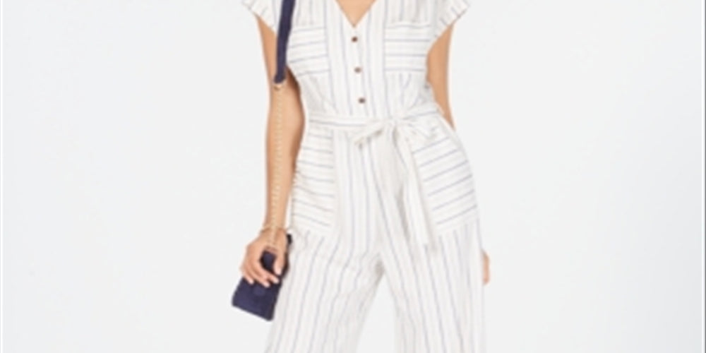 Monteau Women's Striped Belted Jumpsuit White Size Petite Large