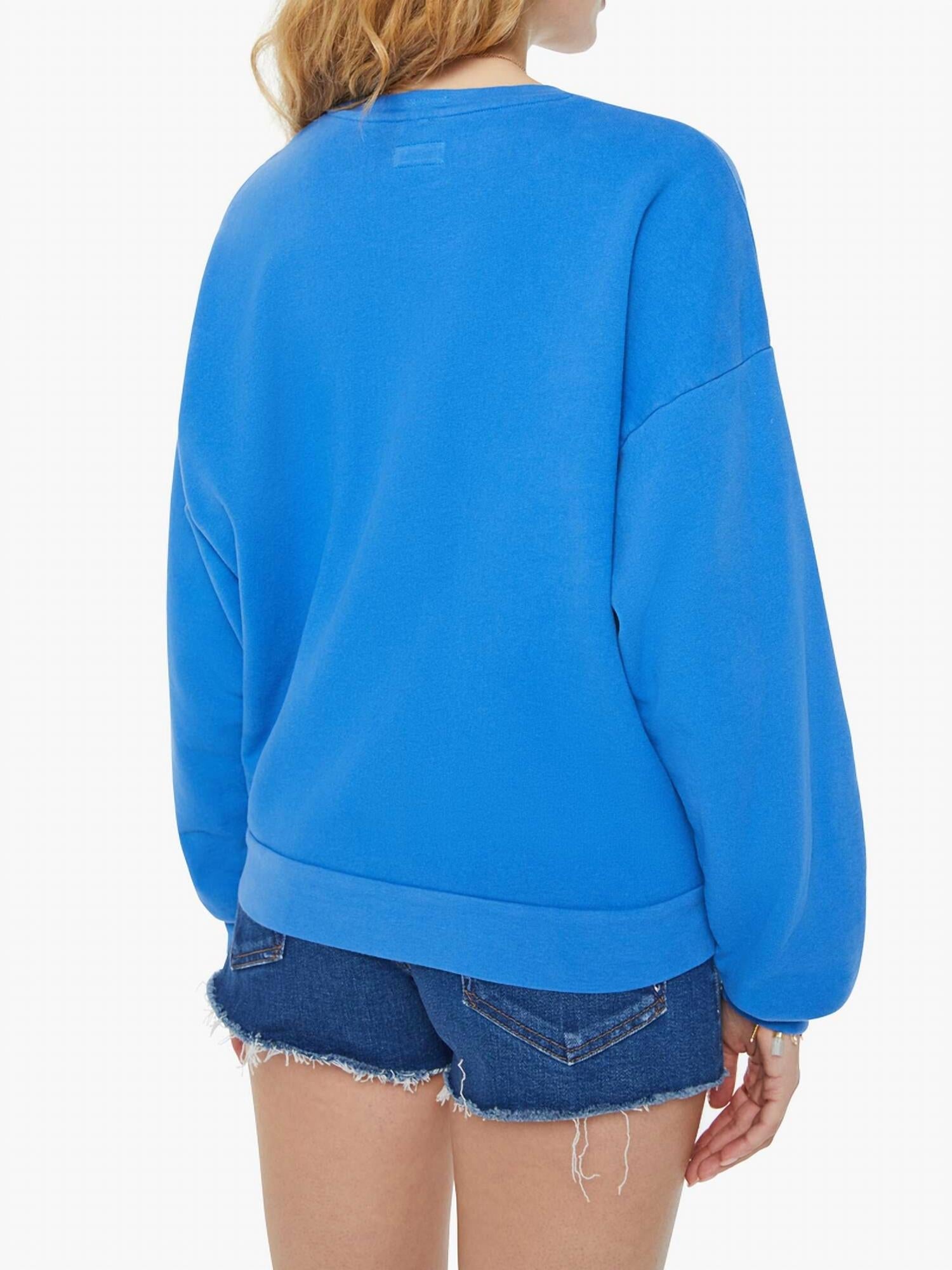 Introducing the Mother Drop Square Mere Madre Crewneck Sweatshirt, a perfect blend of style and comfort in a rich blue hue. This long sleeve sweatshirt features a relaxed fit with dropped sleeves and showcases a striking white text graphic of MOTHER's name in three languages on the front. Made from 100% cotton in Los Angeles, it promises both quality and style. Designed for effortless wear, this streetwear staple is completed with a pull-on closure.
