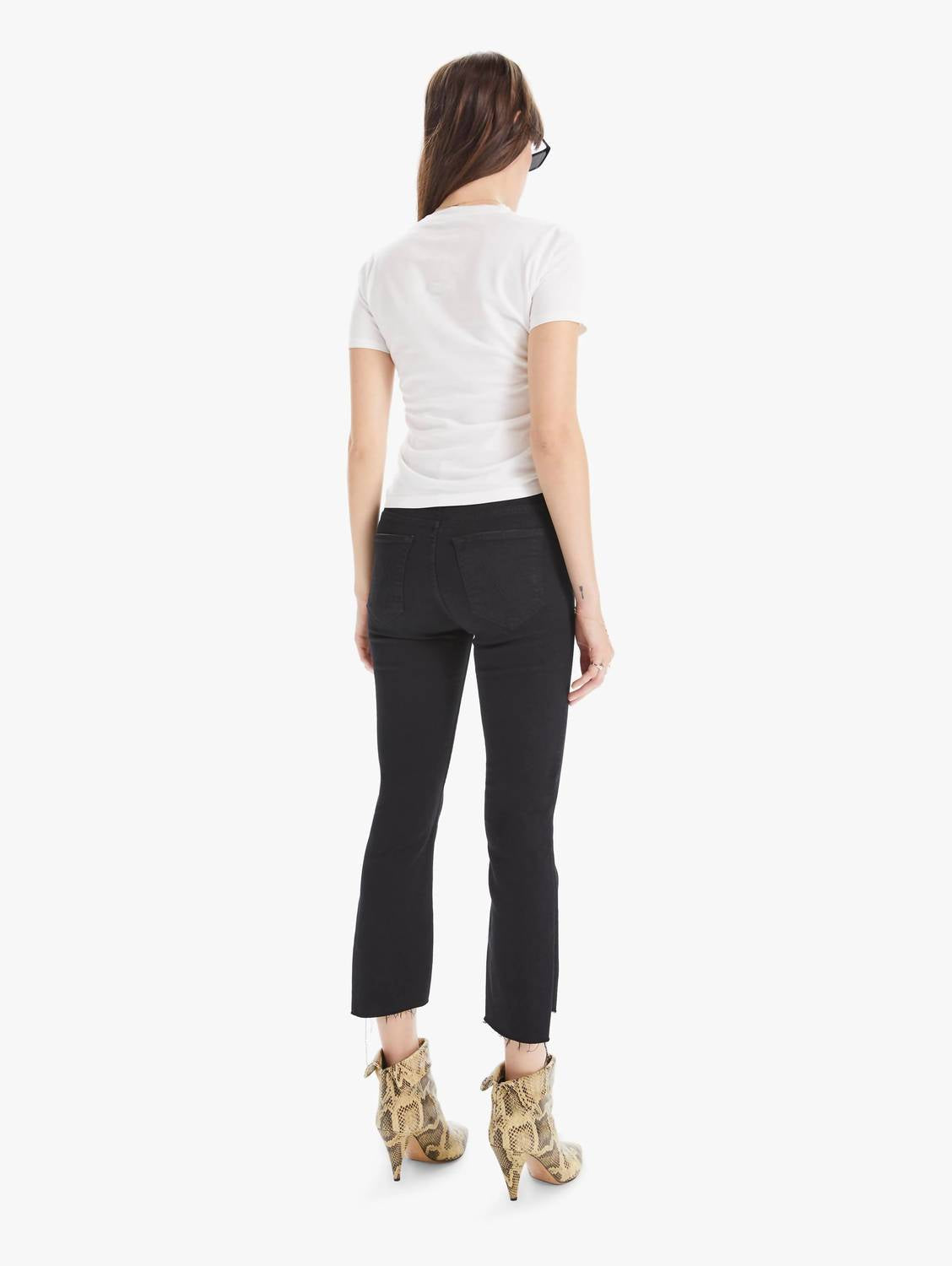 We especially love this cropped jean with a cute pair of slides or sandals. Discover the Insider Crop Step Fray Jean by Mother, a perfect blend of style and comfort. These black jeans come in a solid dark wash with a cropped bootcut leg style and a unique step fray hem. Made from a stretchy denim composition of 92.5% cotton, 5% polyester, and 2.5% elastane, they feature a zip closure for easy wear. Care instructions are simple: machine wash cold with similar colors and tumble dry low.