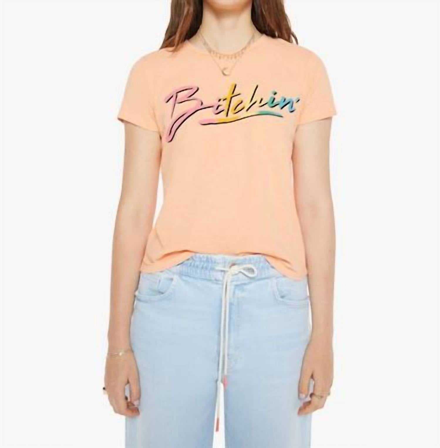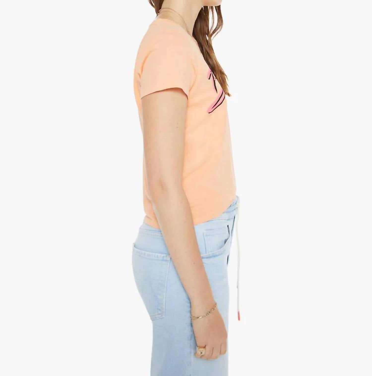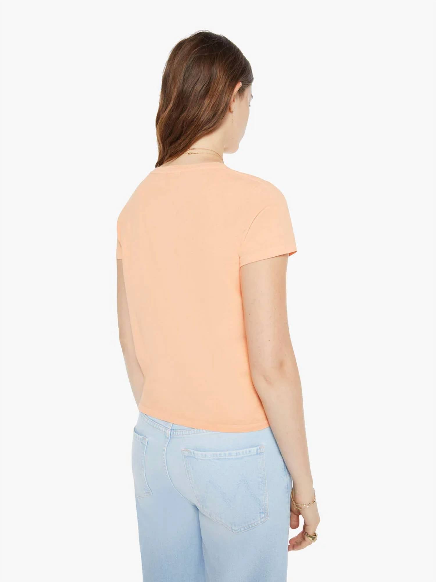 Discover the Petite Lil' Goodie Goodie by Mother, a must-have tee in charming Peach Cobbler designed for summer adventures. This women's graphic tee features short sleeves and a classic crewneck, perfect for a relaxed travel-ready style. Crafted from premium cotton, it ensures comfort and easy movement.