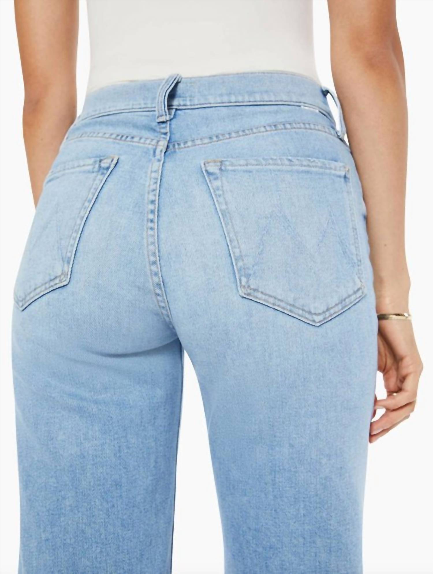 The perfect skinny jeans to wear with your favorite boots this season! Introducing the Rambler Zip Ankle Denim by Mother in the color "Look Ma No Hands," a statement piece crafted for style and comfort. Designed with a high-rise waist, these women's jeans feature a relaxed fit with a wide straight leg, an ankle-length 27-inch inseam, and a button closure for a secure fit. The premium cotton blend of 96% Cotton, 3% Polyester, and 1% Elastane ensures stretch and mobility, while the light wash denim with whiskering and knee fading adds a trendy touch. Proudly made in Los Angeles, these jeans are easy to care for with machine wash and line dry instructions, perfect for spring workwear occasions.