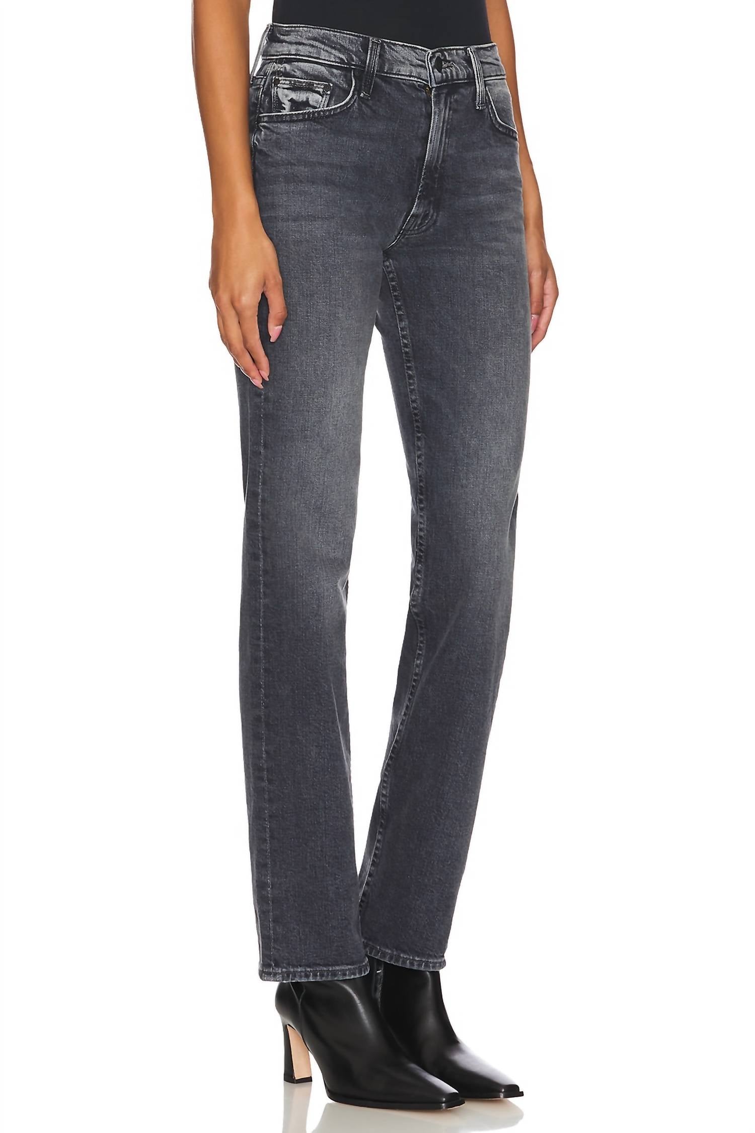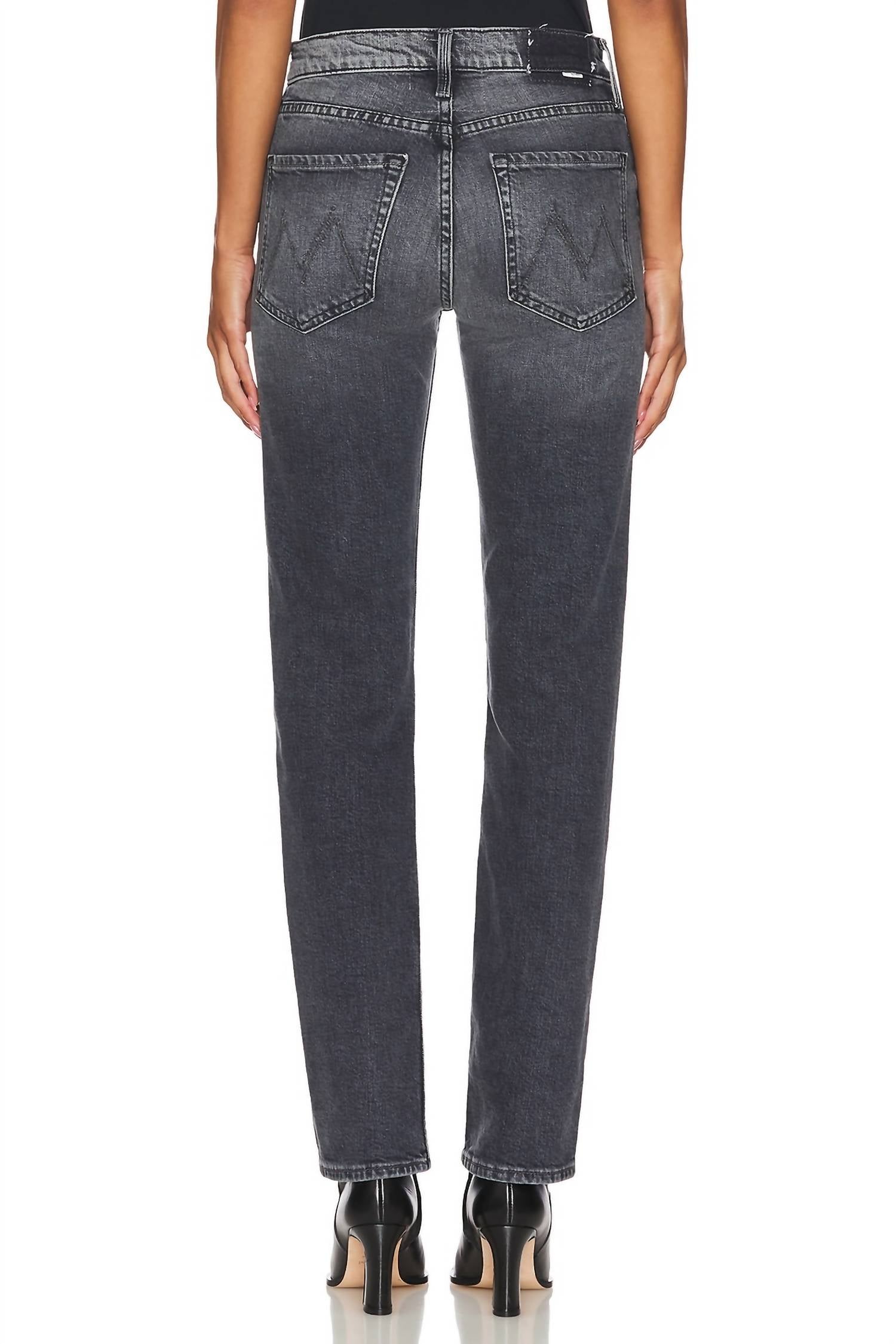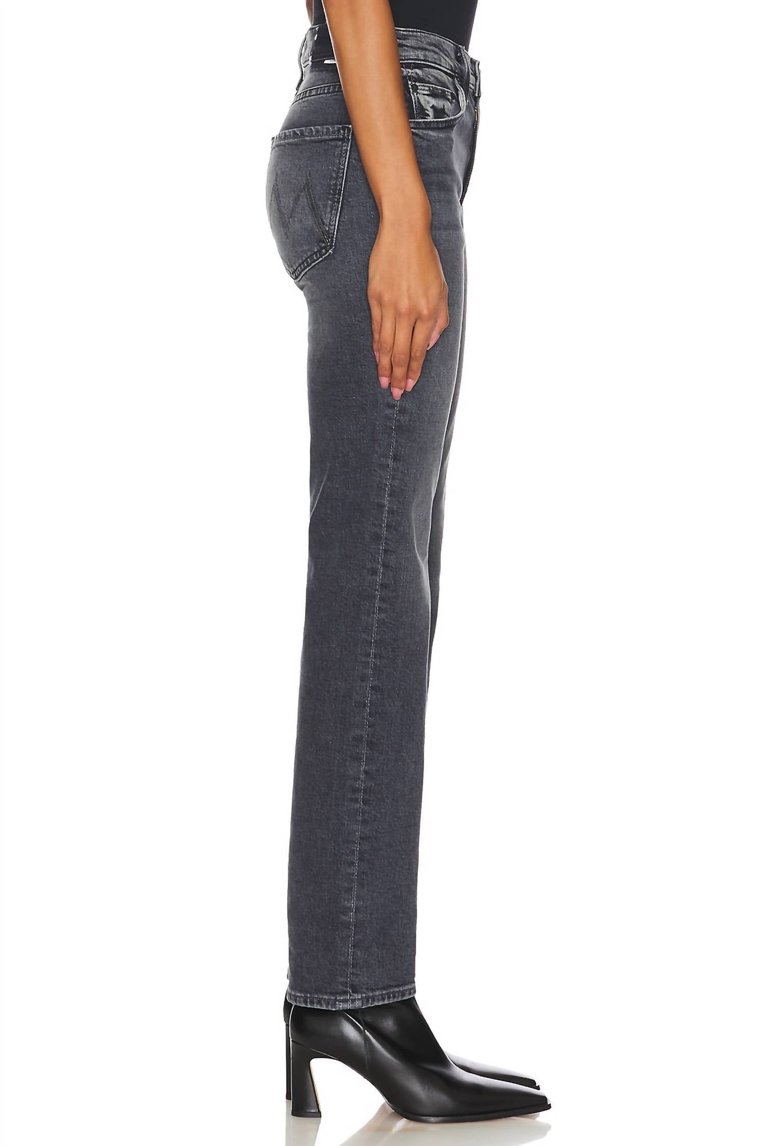 This classic straight leg jean has a perfect fit and goes with just about everything. Discover the Mid Rise Rider Skimp by Mother, a chic addition to your winter wardrobe in the stunning Outta Sight shade. Crafted from a comfortable cotton blend, these women's straight-leg jeans feature a mid-rise with a 10" waist rise, ensuring a flattering fit. The design includes a zip fly and button closure, complemented by a classic 5-pocket layout. Expertly made in the US, they boast a dark wash finish with a leg opening that narrows from 16" at the knee to 14". 98% Cotton, 2% Elastane.