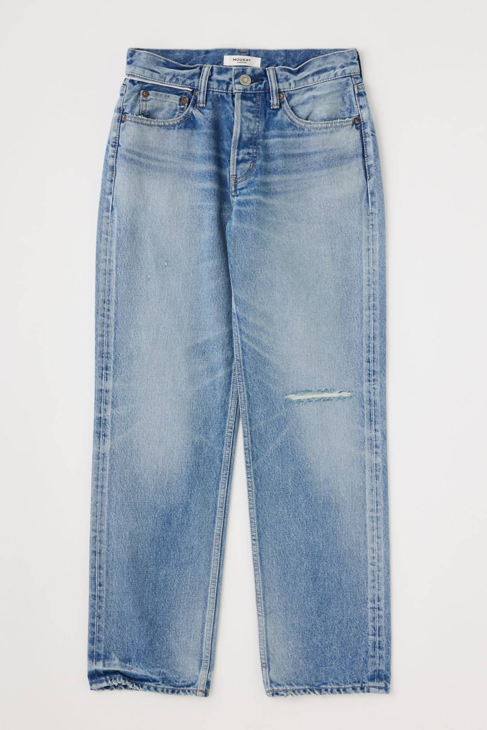 Pair these straight leg jeans with flats, sandals or even heels! You can't go wrong. Elevate your denim collection with the Ballard Wide Straight Jeans by Moussy in a trendy light blue hue. These jeans feature a mid-rise waist and relaxed fit, complete with a wide leg and full-length design that perfectly embodies streetwear style. Crafted in Japan from 100% cotton, they showcase a ripped knee detail and a classic 5-pocket silhouette. Featuring a button fly closure, the jeans offer a comfortable 9-inch rise and 29.9-inch inseam, and they are machine washable with line dry instructions. Model is 5'5" and wearing size 24.