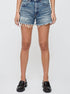 Introducing the Herricks Shorts by Moussy, the perfect addition to your streetwear summer wardrobe. With a mid to high-rise fit and button closure, these blue jean shorts offer both style and comfort in a non-stretch heavy weight. Made from 100% cotton with a cowhide leather label, they are imported from Japan and feature convenient pockets. For care, machine wash in cold on a delicate cycle, avoid bleach and tumble dry, and iron hot with a press cloth as needed. The model in the image is 5'9" and is wearing a size 25.