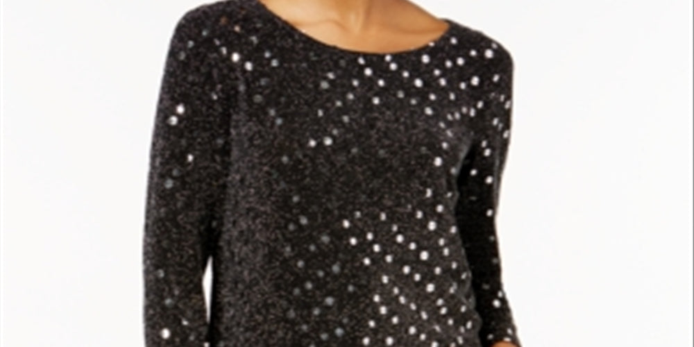 MSK Women's Sequined Metallic Tulip Back Top Gray Size Large
