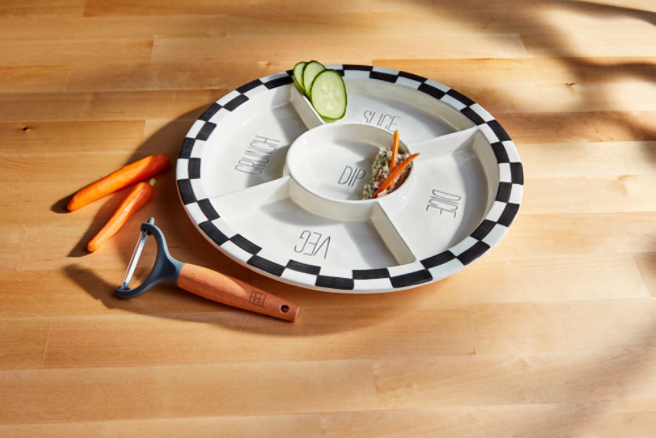 Elevate your dining experience with the Bistro Veggie Platter by Mudpie, a chic addition to any kitchen. This 2-piece set comprises a sturdy dolomite platter with hand-painted ceramic that is dishwasher and microwave safe, along with a 6-inch plastic and wood peeler. The platter, measuring 1 1/2" x 13" in diameter, promises durability and elegance for any occasion. Perfect for hosting or family meals, this set is a functional and stylish choice for food enthusiasts.