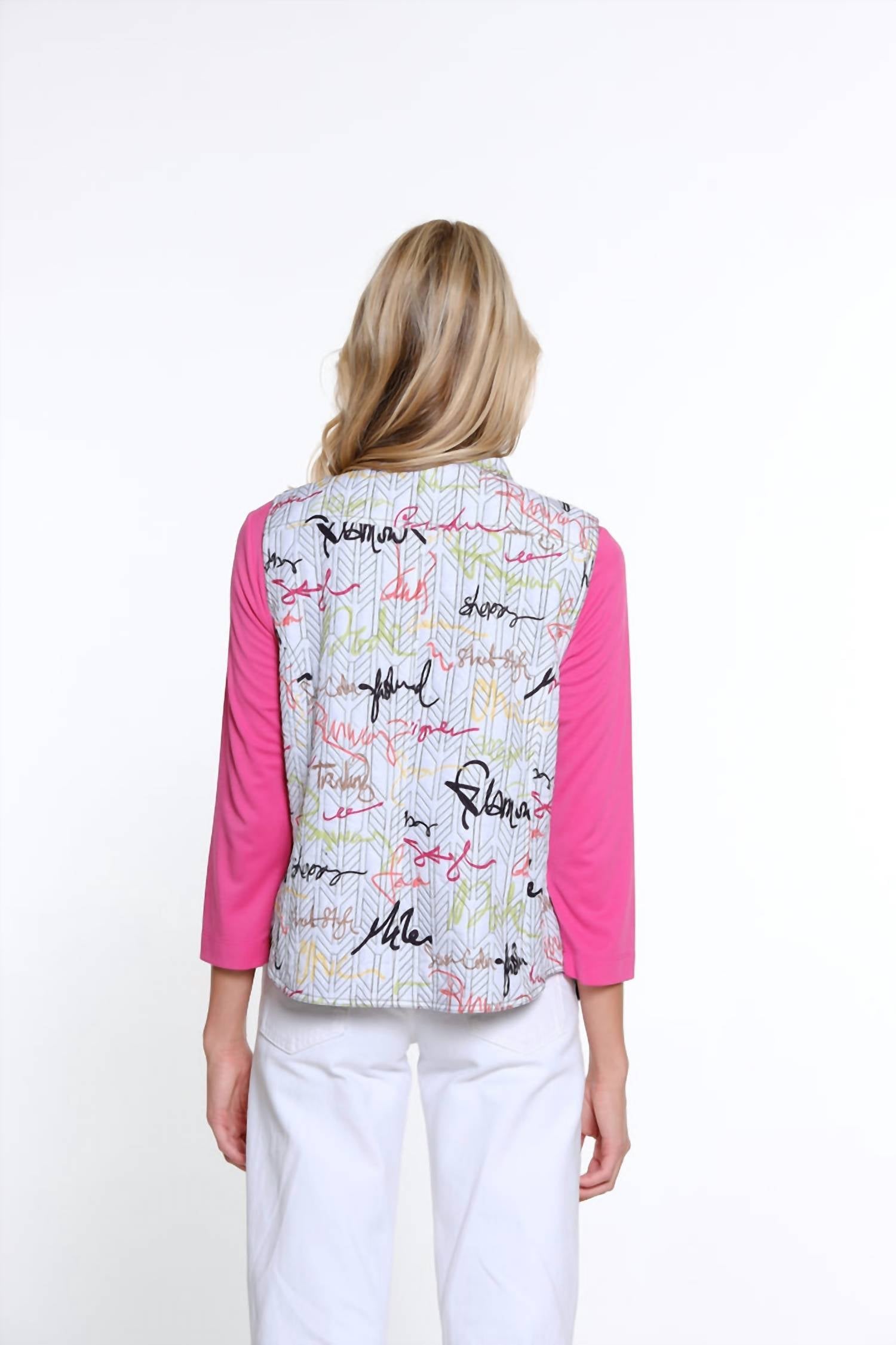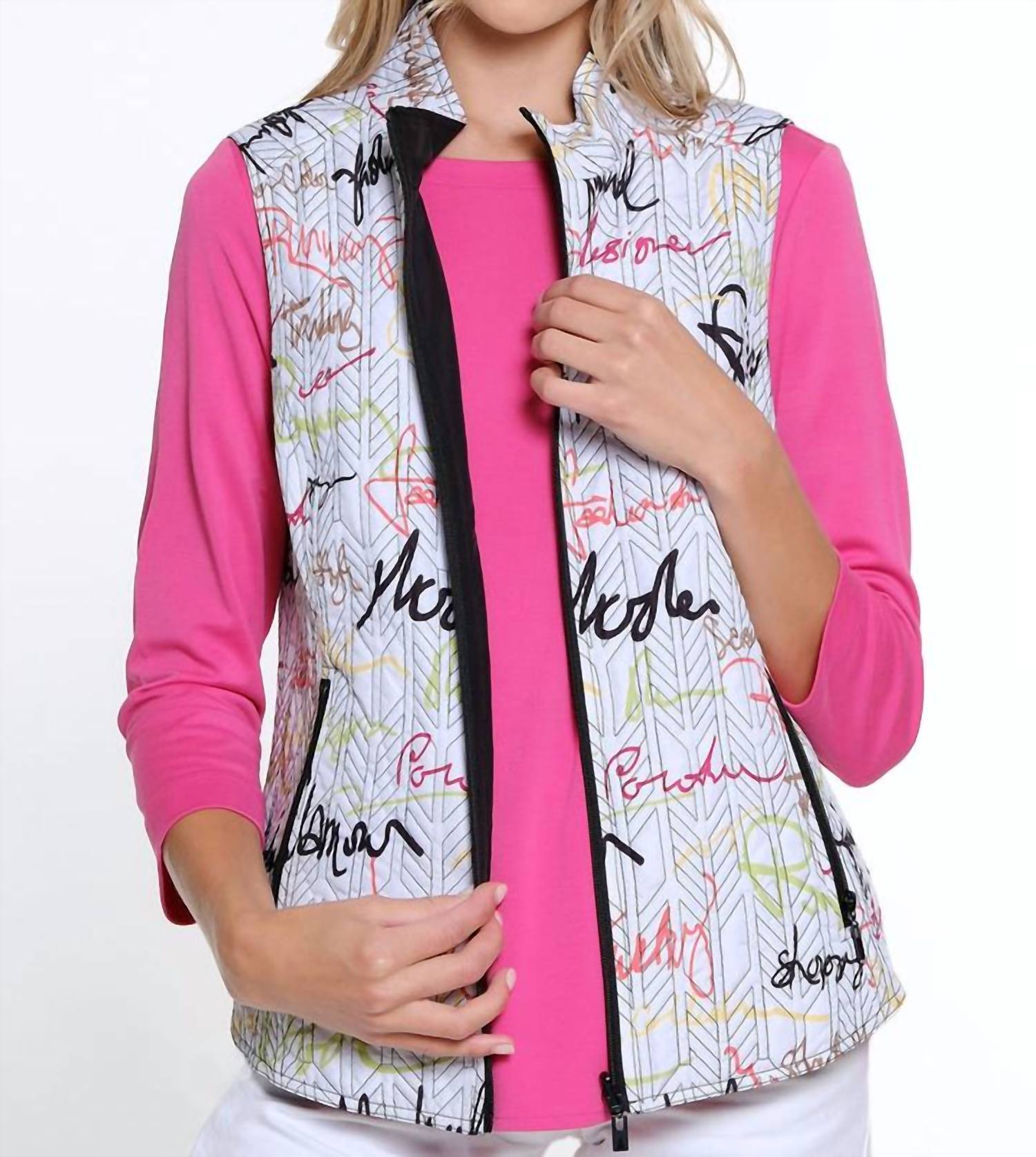 A vest so versatile you can mix and match it with almost any outfit and it will feel brand new every time. Elevate your wardrobe with the Just Say It Vest by Multiples, a chic and functional piece for any occasion. This sleeveless, reversible vest features a zip closure and a zip-through collar, offering a perfect blend of style and utility. Crafted from multi-patterned polyester, it includes a practical zippered pocket for added convenience. Care: Machine wash.