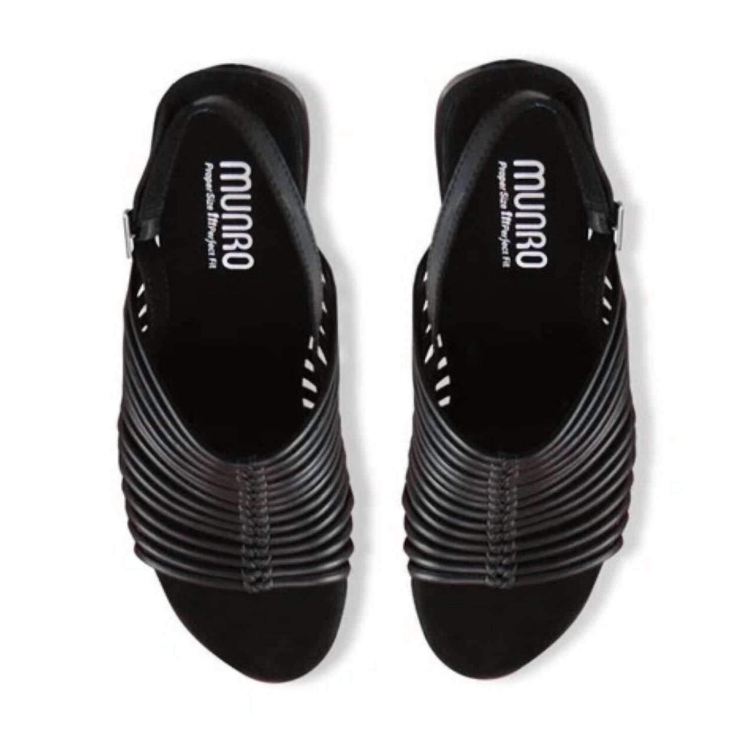 Elevate your style with the Women's Celia Sandal by Munro, crafted for the discerning woman who appreciates elegance and comfort. Designed with charming tubular black lamb leather straps that gracefully cover the foot from vamp to instep, these sandals feature a classic square adjustable buckle on the backstrap for a personalized fit. They come with a latex rubber outsole, shock absorbency, flexibility, and a riveted steel shank for added stability. Additionally, the microfiber wrapped padded insole ensures all-day, step-by-step comfort.
