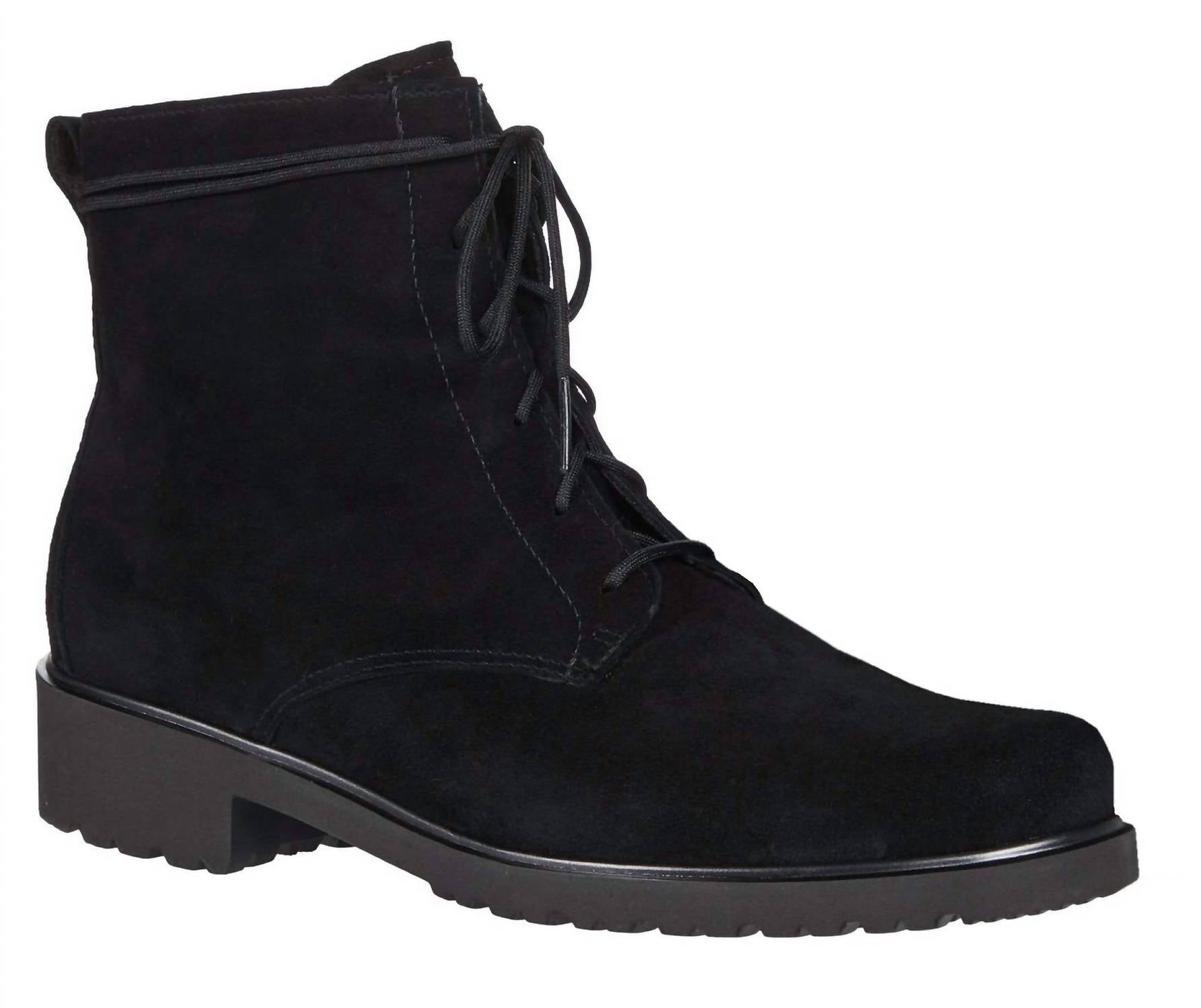 Say hello to the perfect, most versatile boot. The ankle height makes this style easily transition from day to night. Wear them with your favorite skinny jeans and tee for a more laid back look, or pair them with your favorite mini dress and jacket for a night out on the town. Meet the Women's Finnley Boot by Munro, a minimalist masterpiece in suede designed for both style and practicality. This ankle boot, assembled in the USA, features a six-eye lace and inside zipper for effortless on-and-off convenience. The ultra-lightweight XL Extralight molded EVA outsole ensures flexibility and shock absorption, while the contoured insole and riveted steel shank provide optimum comfort. Complete with a removable polyurethane footbed and moisture-wicking micro denier lining, the Finnley Boot delivers both breathability and water resistance.