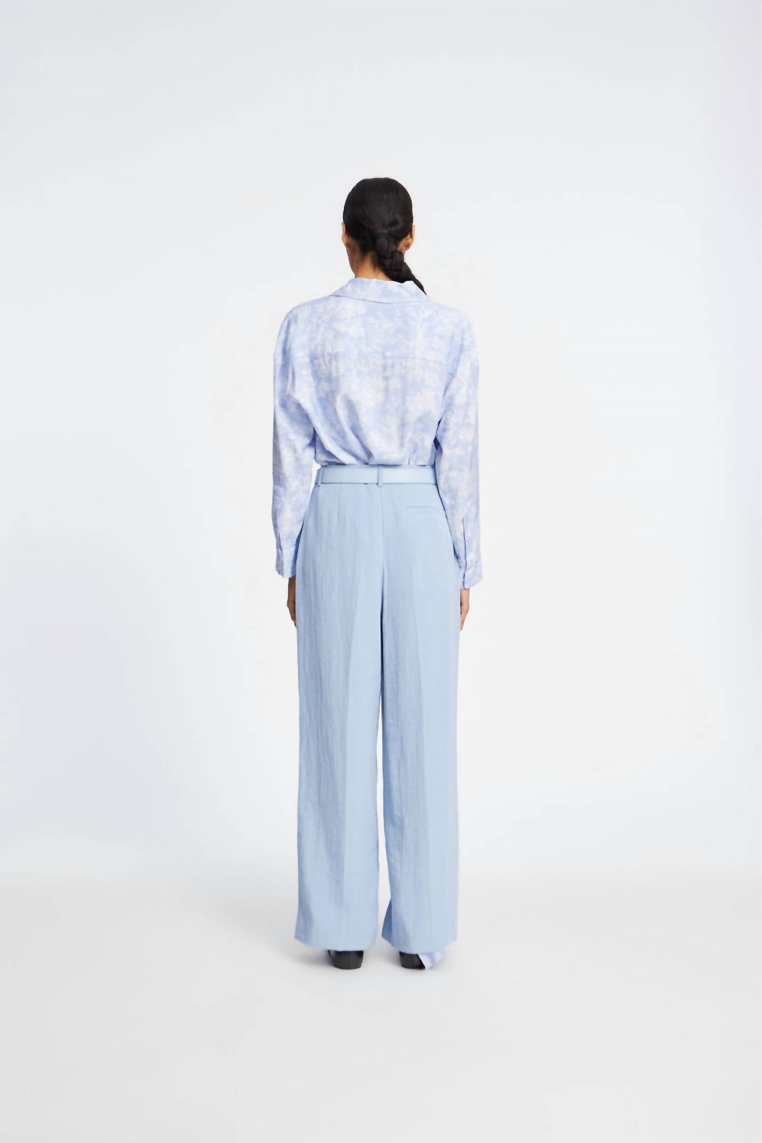 Discover the Women's Filius Button Shirt by MUNTHE, a chic blouse perfect for your summer vacation wardrobe. This blue floral patterned piece features long sleeves and a classic collar for a sophisticated streetwear look. Designed without pockets for a streamlined silhouette, it offers a secure button closure. While specific wash and dry instructions aren't provided, care should be taken to preserve its quality.