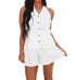 Make a statement with the Bold Move V-Neck Romper by Mustard Seed, a playfully unique addition to your summer wardrobe. This sleeveless romper in a solid white linen blend features a halter V-neck and vest style design, perfect for holiday parties or Thanksgiving gatherings. Designed with a button closure for ease and a regular fit, this piece is a quintessential choice for minimalist trends. Enjoy the sleek and bold style, made without pockets for an effortlessly streamlined look.