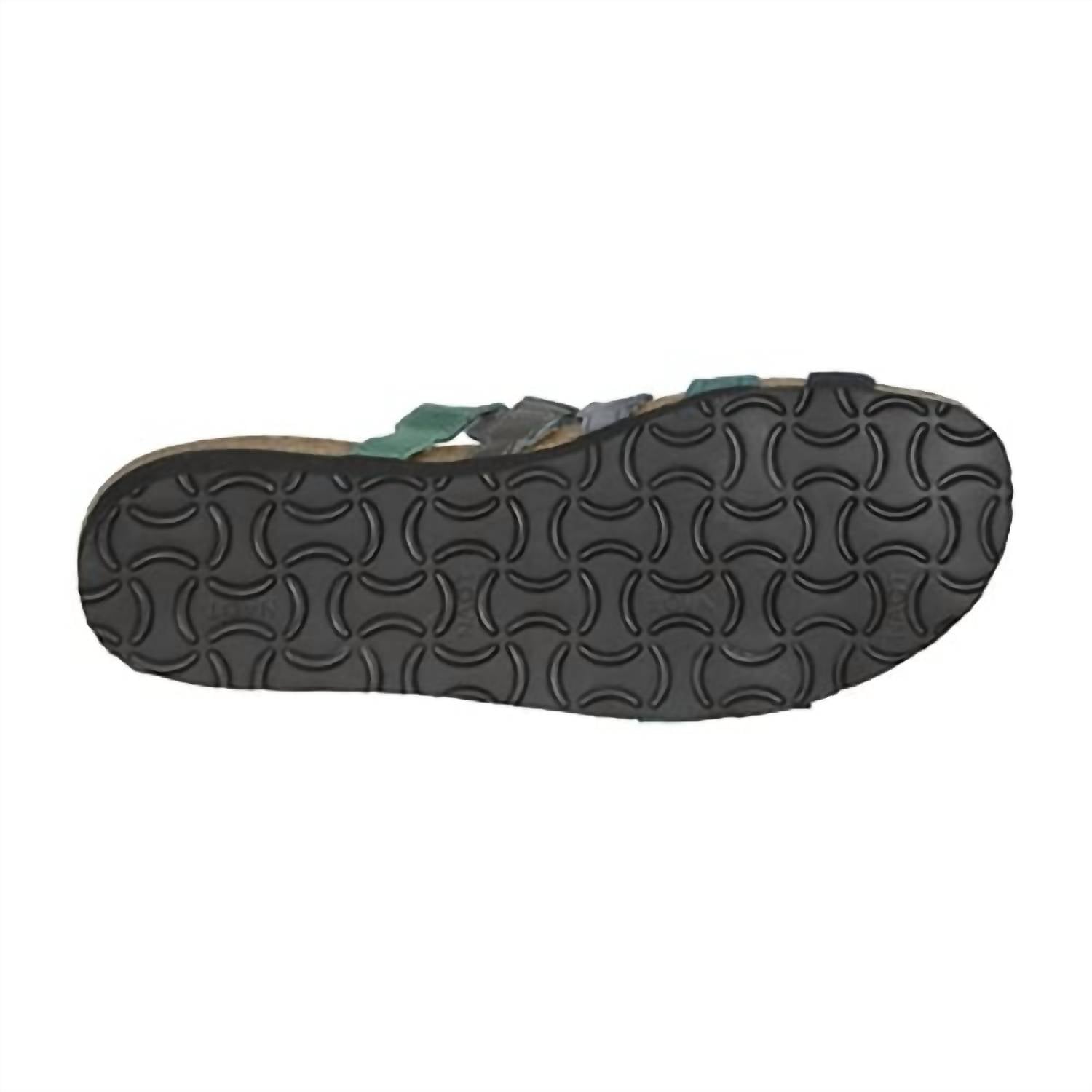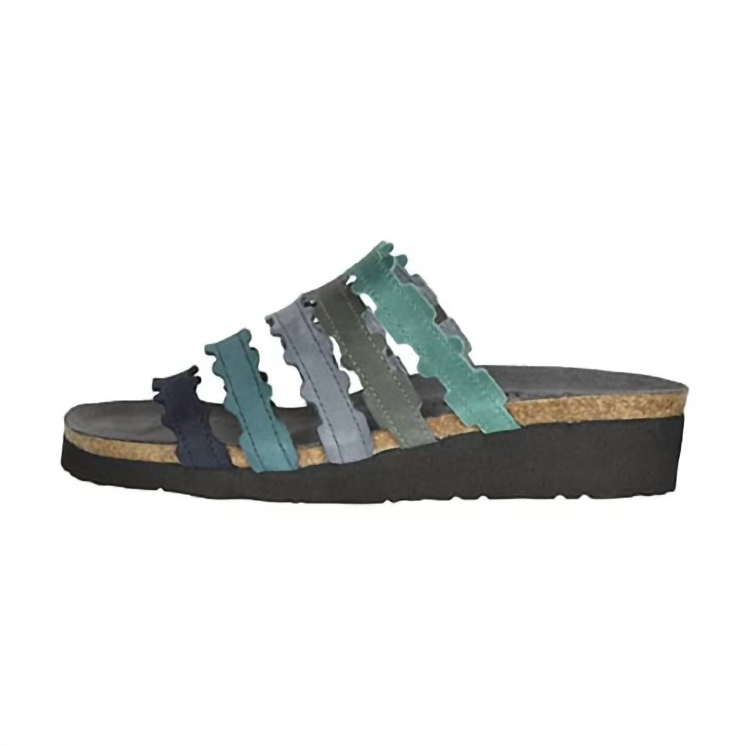 The Adina slide adds a cheerful touch to any spring outfit with soft seasonal colors and scalloped straps crafted from nubuck and leather. Three gore straps provide a customizable fit, while the anatomic cork and latex footbed, wrapped in soft suede, molds to your foot over time for lasting comfort.