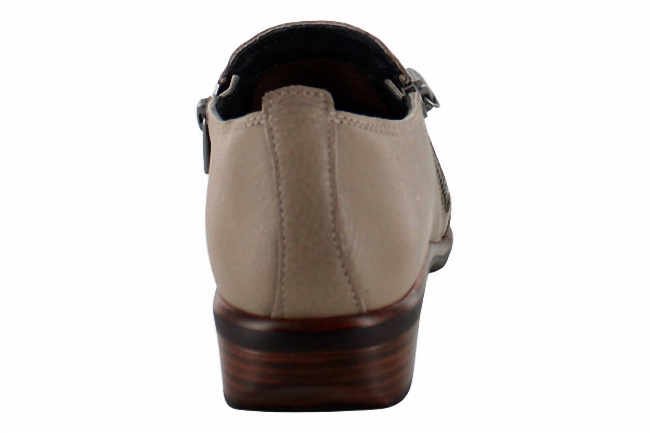 A classic loafer that is both comfortable and polished. Step into style and comfort with the Naot Women's Autan Loafer in a versatile Soft Stone color. Crafted from premium leather, this loafer features convenient double side zippers and a removable cork & latex footbed, perfect for those who need orthotic-friendly designs. The durable polyurethane sole ensures slip resistance, while the almond toe and block heel provide a chic touch with a heel height of 1.5 inches. True to size with a medium width, this workwear staple is ideal for both summer and evening events.
