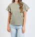 Experience effortless charm with Nation LTD's Camille Ruffle Sleeve Top in Herb, an essential addition to any casual wardrobe. This top features short flutter sleeves and a classic crew neckline, crafted from 100% Peruvian Cotton. With a relaxed fit and dropped shoulders, it ensures comfort and style, made in Peru. The pull-on closure adds convenience, making it a perfect pick for a laid-back day. Model Info: Faryn is 5'6" with a 34" bust, 28.5" waist, and 31" hip, wearing a size small.