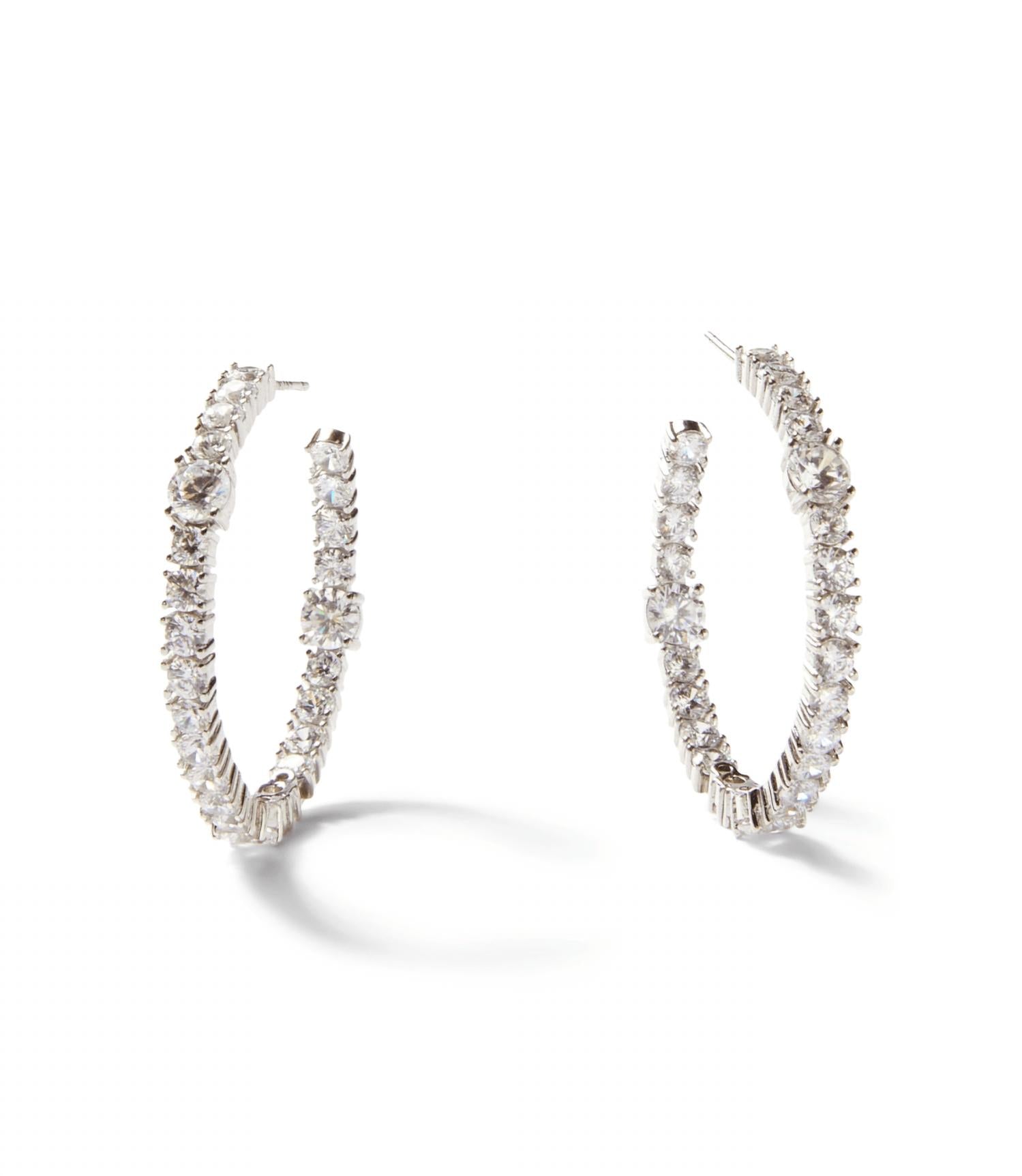 eye-catching earrings for every occasion. Elevate your style with the Women's Sparkling Hoop Earrings by Native Gem, designed to add a touch of glamour to any ensemble. Made in the USA, these fine earrings feature a brass base with a sterling silver plate, perfectly capturing light with their sparkling gemstones. Stylishly crafted, they have a diameter of 1.5" and weigh just 0.42 oz, making them a comfortable addition to your jewelry collection. Ideal for any occasion, these earrings promise to be a standout accessory.
