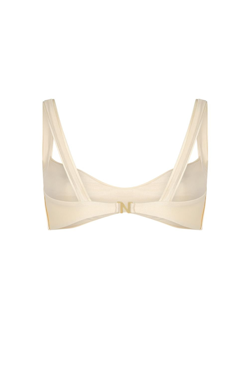 Ideal for relaxed poolside moments, this adorable swimsuit effortlessly transitions into the perfect sunset dinner outfit when paired with a flowing skirt. Introducing the Women's Amanecer Bralette Bikini Top by Nelblu, a summer essential in the serene shade of butter. This stylish swim top is crafted from high-quality polyamide, offering a solid pattern that complements any beach day ensemble. With cheeky coverage and intricate 3D vein details, this top is designed for both comfort and style. Ensure longevity by washing with cold water and mild detergent, avoiding fabric softeners, and drip drying in the shade.