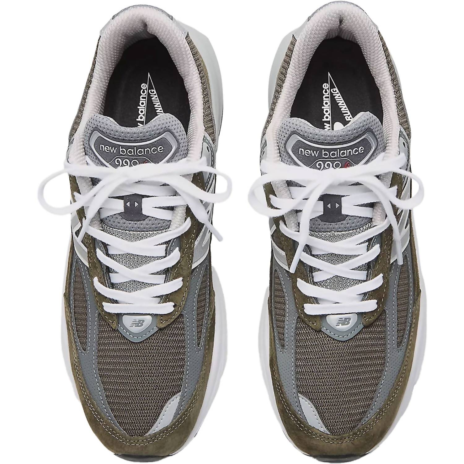 Get your daily steps in with these adorable sneakers. Introducing the New Balance U990v6 Sneaker, a stylish blend of performance and iconic design. This unisex sneaker in olive/grey features a pigskin and mesh upper with a classic round toe for maximum comfort. Made in the USA, it boasts a 12 mm drop, blown rubber outsole, dual-density collar foam, and ENCAP midsole technology offering the perfect combination of cushioning and stability. Ideal for athleisure and fitness occasions, this sneaker embodies over 75 years of American craftsmanship and style.