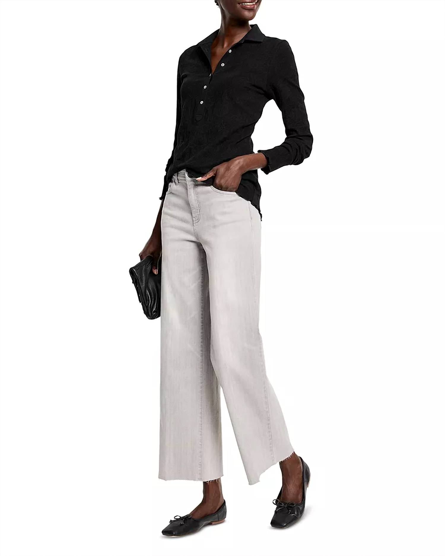 Pair these wide leg jeans with mules, slides or your favorite strappy sandals. Denim weekends just got more comfortable with the 28" Wide Leg Weekend Jeans by Nic + Zoe. Designed in a solid Mercury hue, these women's jeans feature a mid-rise fit with an 11" front rise, comfortable through the hip leading into a relaxed wide leg. Made of a premium Cotton Blend with 52% Cotton, 36% Rayon, 10% Recycled Polyester, and 2% Spandex, they promise durability and stretch. These jeans boast a button closure with a convenient five-pocket design, including patch pockets, and are 28 inches long. Care is straightforward: machine wash cold with like colors and tumble dry low.