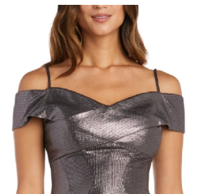 Nightway Women's Metallic Off The Shoulder Gown Gray Size 22W