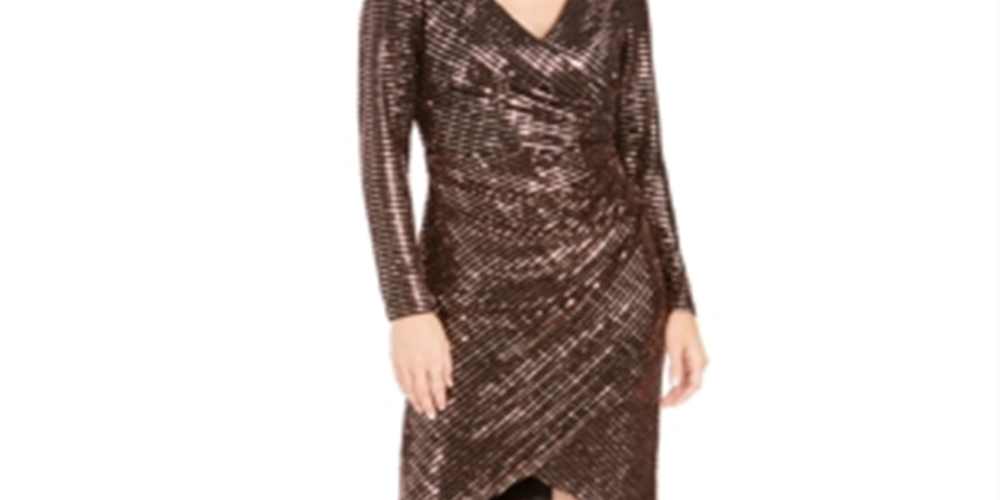 Nightway Women's Sequined Long Sleeve V Neck Knee Length Tulip Cocktail Dress Brown Size 4