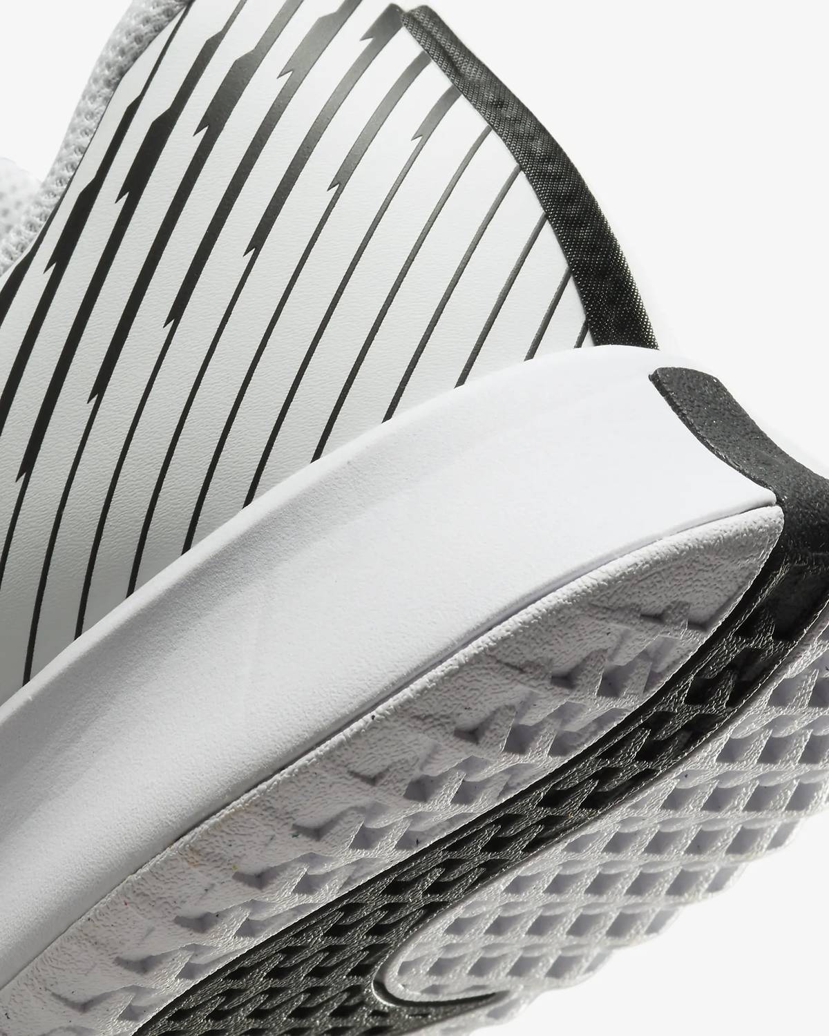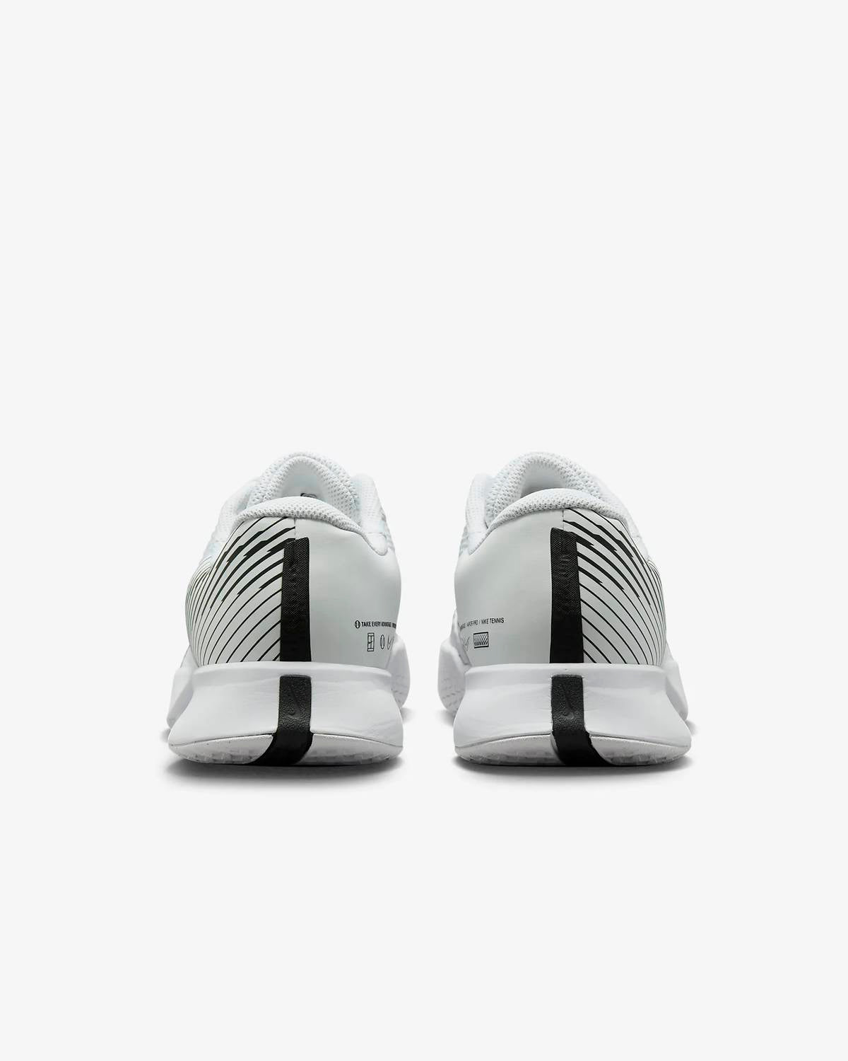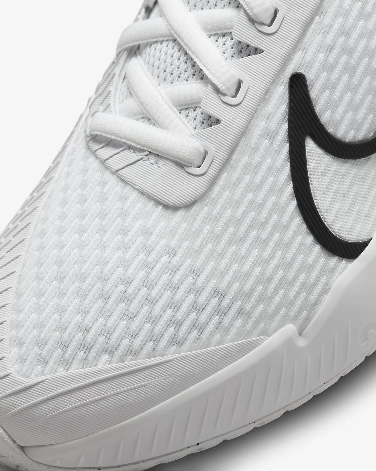 Step up your game with the Women's Court Air Zoom Vapor Pro 2 Sneakers, designed for hard-court surfaces with a sleek white, pure platinum, and black colorway. These low-cut sneakers are crafted from reinforced mesh for durability and breathability, featuring a forefoot Zoom Air unit for responsive cushioning. The stretchy internal sleeve ensures a sock-like fit, while the herringbone outsole provides optimal grip.